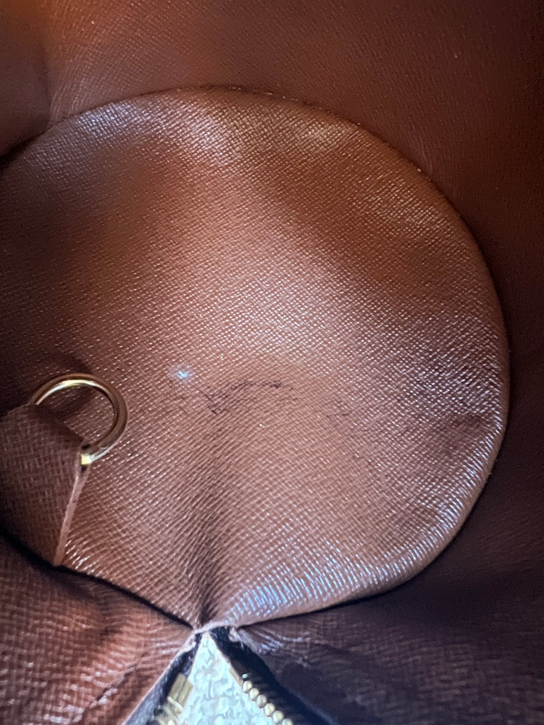 Exterior: Good condition with general signs of wear. Darkening leather trim and general wear to handles and edges. Small marks to the canvas.
