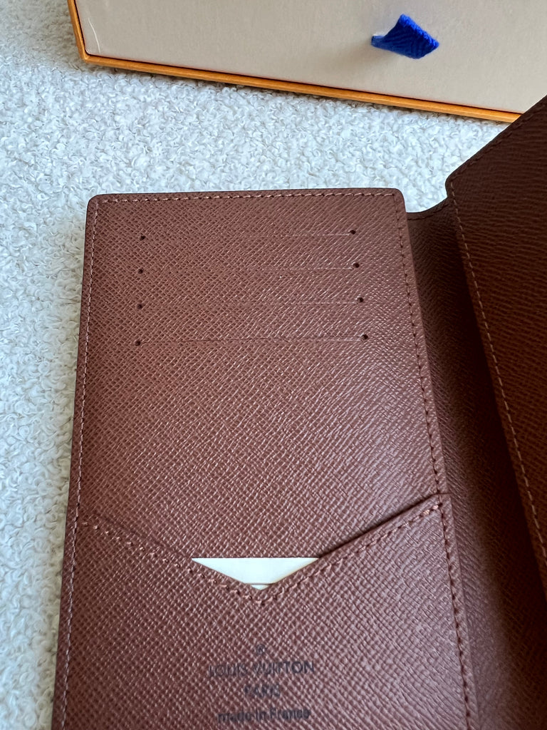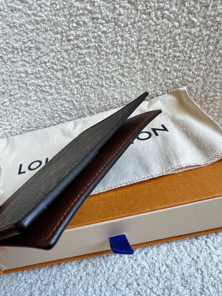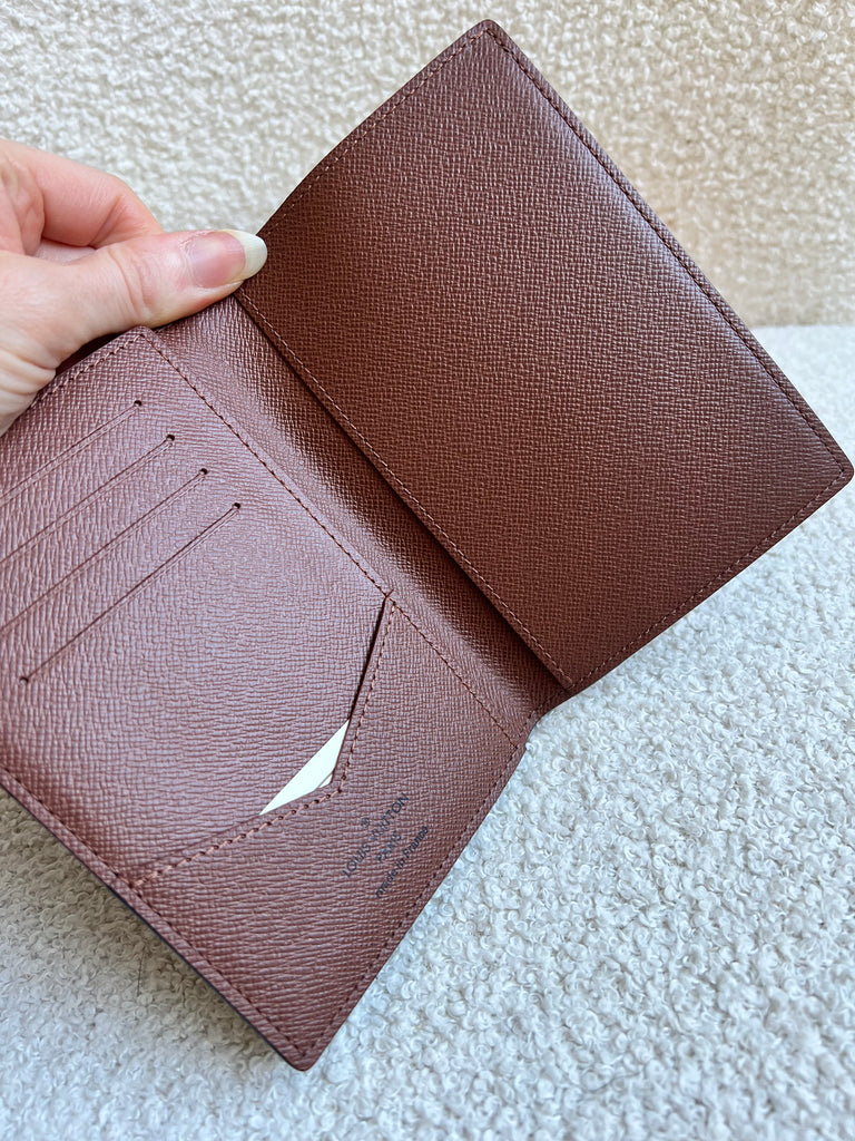 Louis Vuitton Passport Cover in Monogram canvas. Features four credit card slots and two flying pockets for easier access to your passport.
