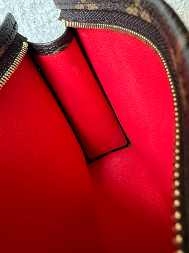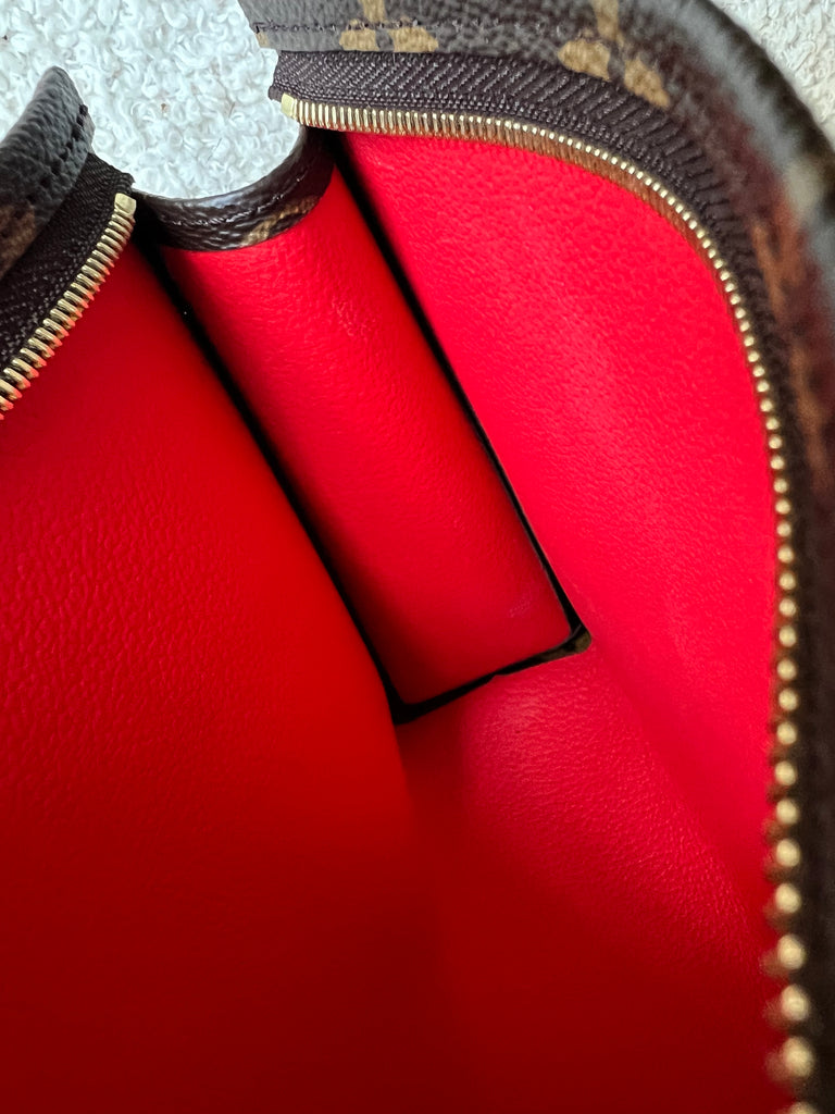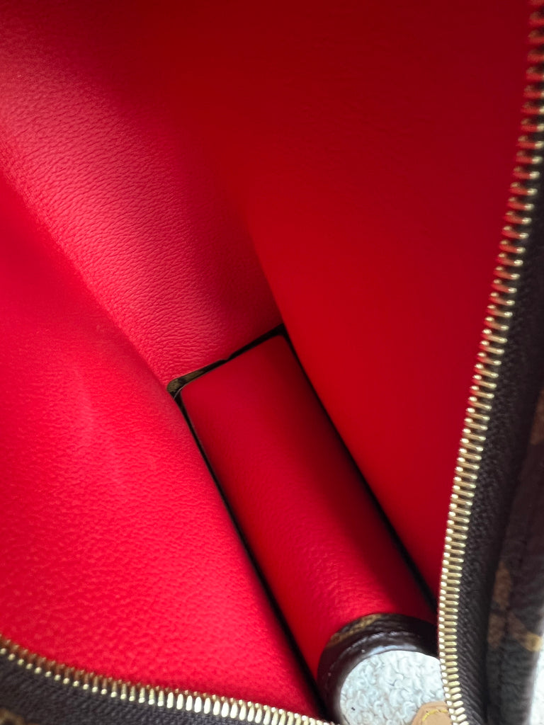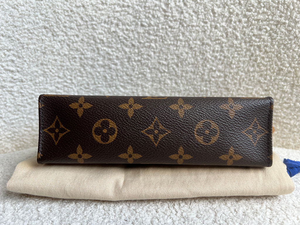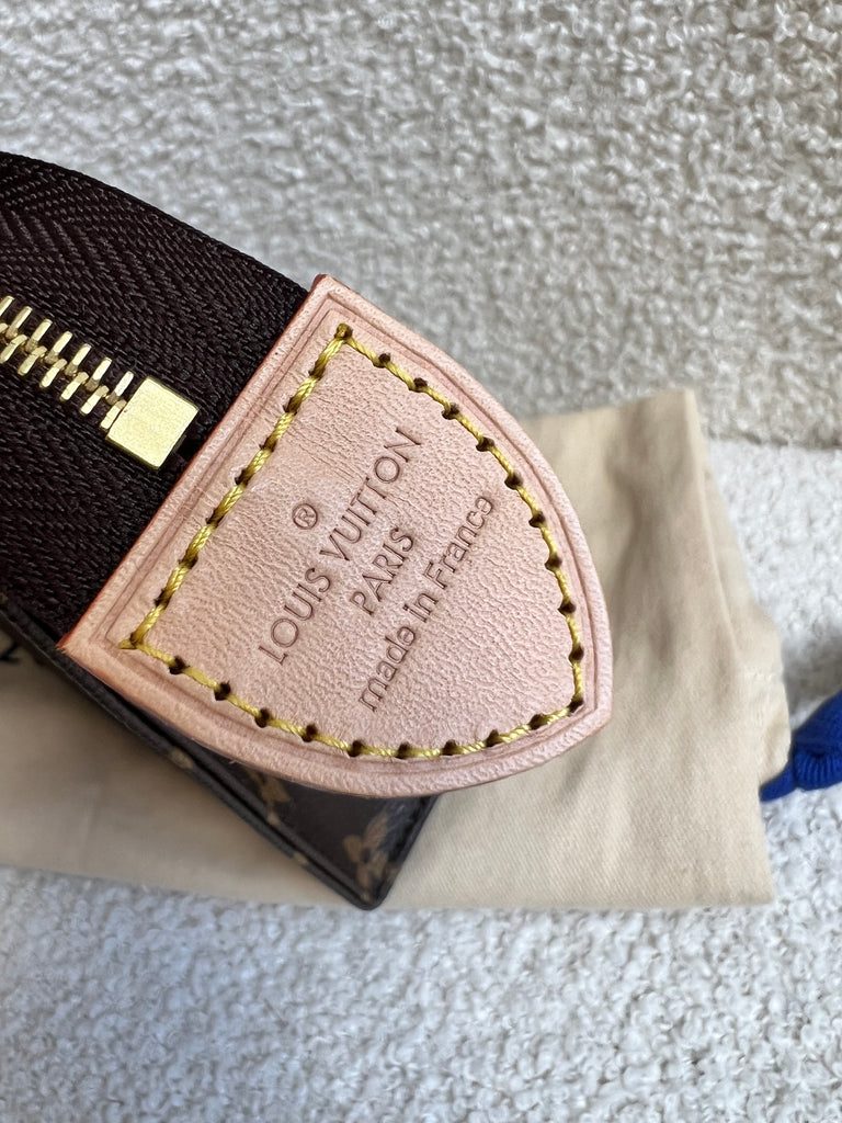 Louis Vuitton Toiletry Pouch 19 in Monogram. This highly sought after item is crafted from monogram canvas with a red interior. This mid sized pouch in monogram canvas features a washable lining and easily slips into a handbag. Zipper closure and can also be used as a clutch. Microchip item so post 2021.