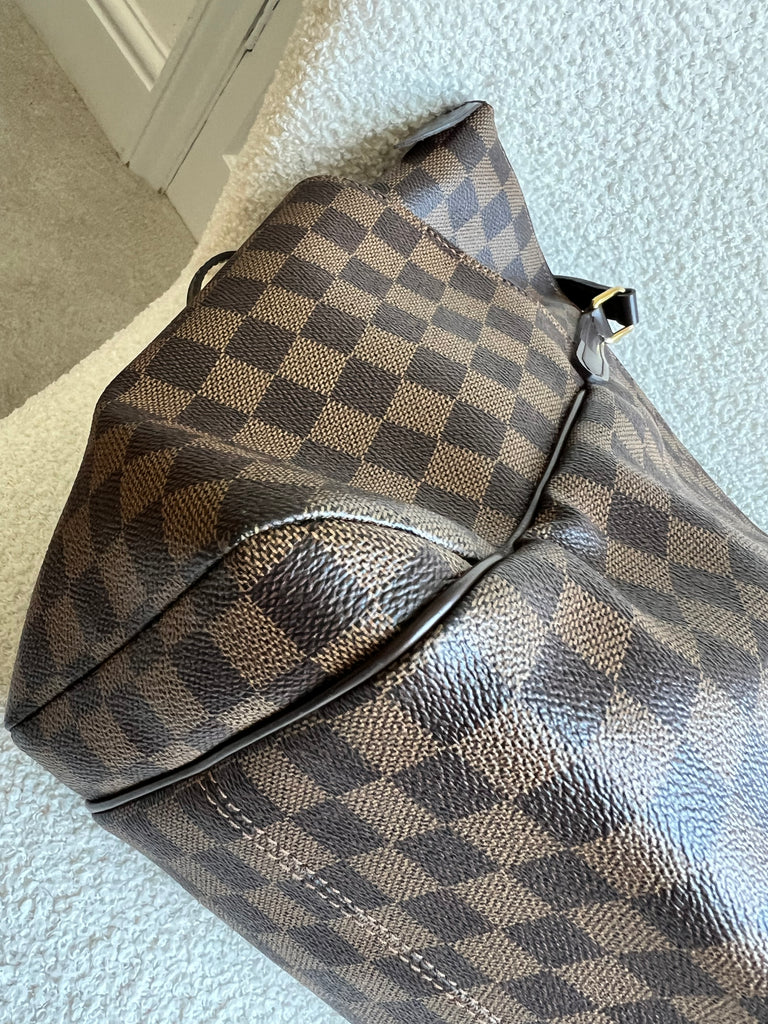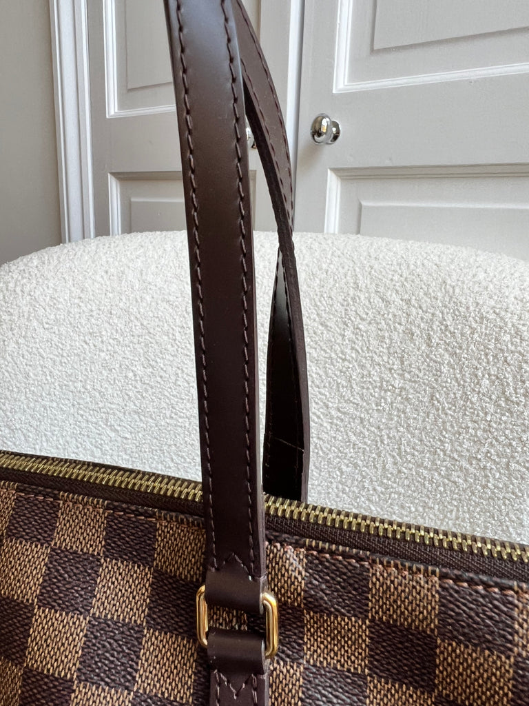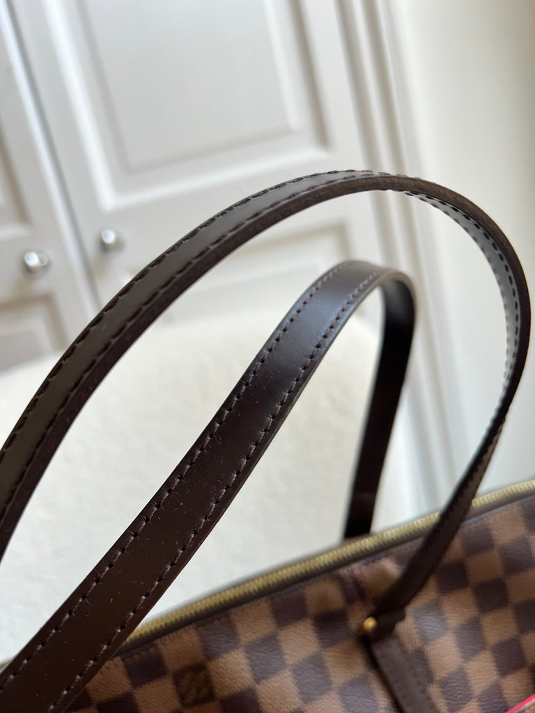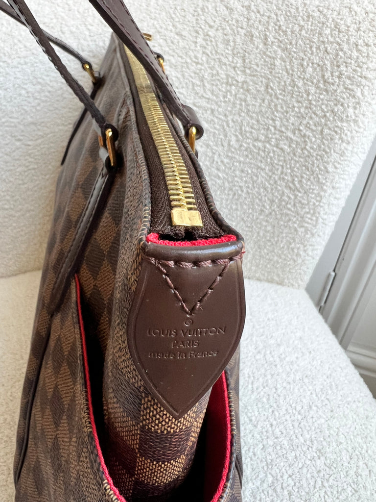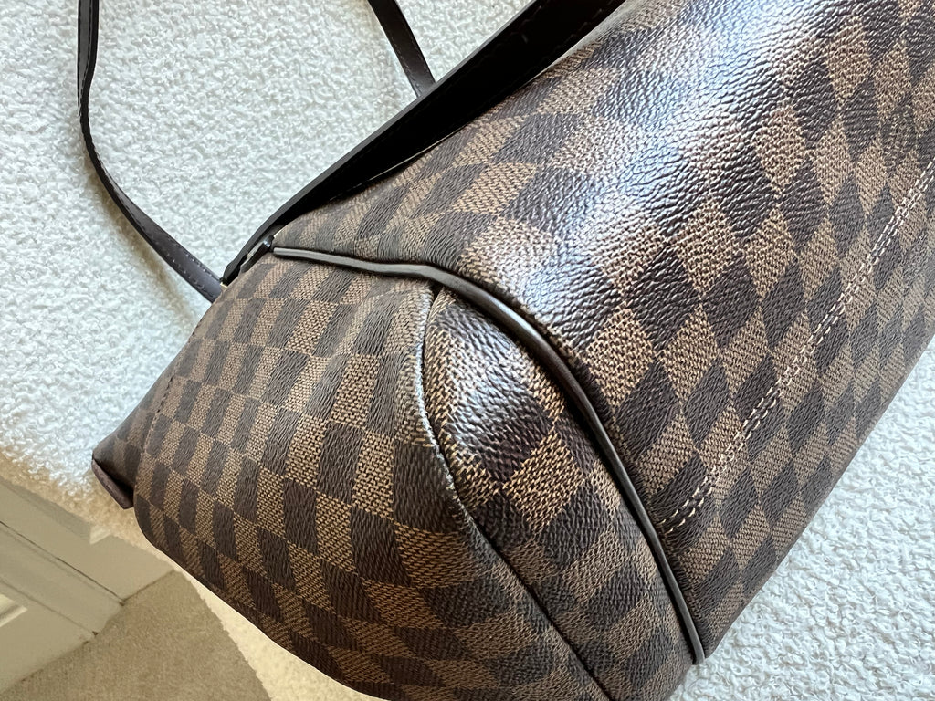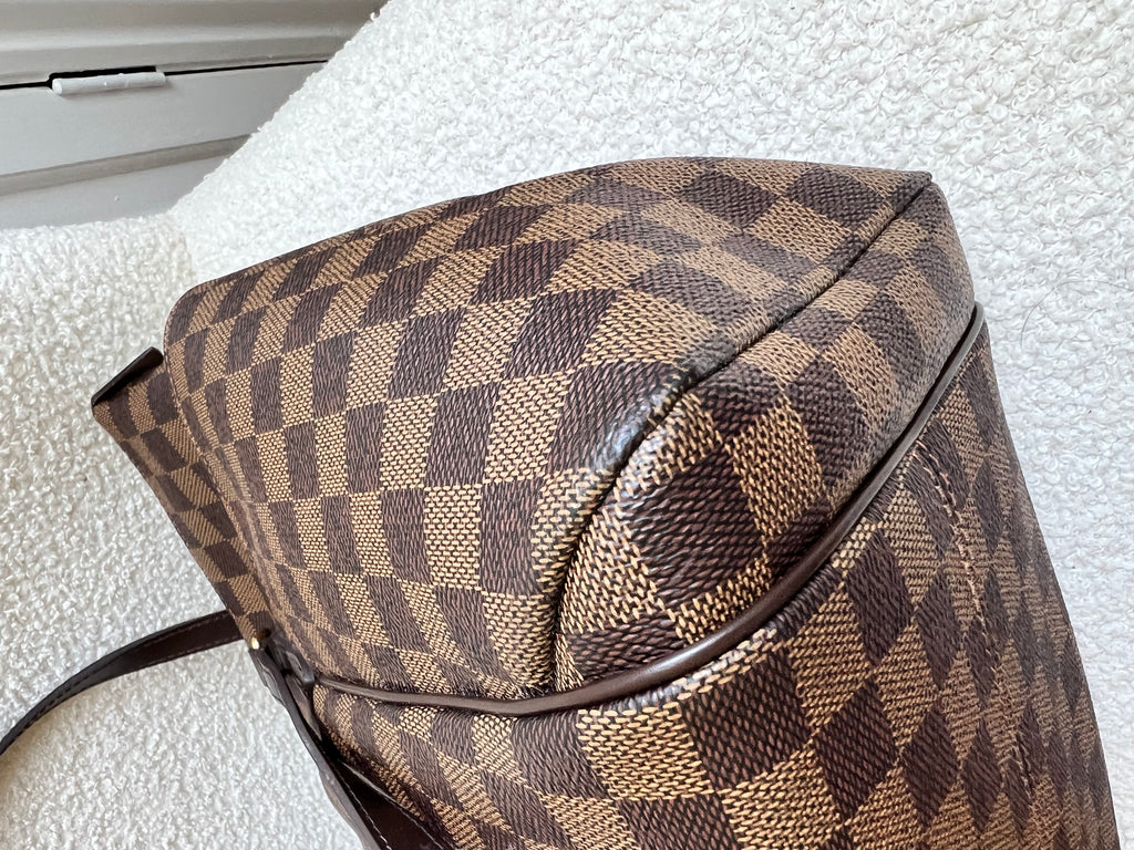 Louis Vuitton Totally MM Tote in Damier Ebene canvas with gold hardware. The Totally is an easy to wear, lightweight shoulder tote and is a classic, practical bag. The larger size of the totally and is roomy inside making it ideal for a day to day or work bag. Can be carried in the crook of the arm or comfortably over the shoulder using the two top handles. Great alternative to the Neverfull with sturdier handles and a more secure (zipped) closure.