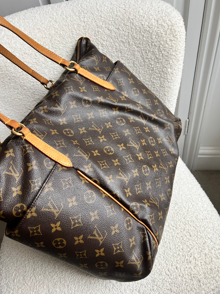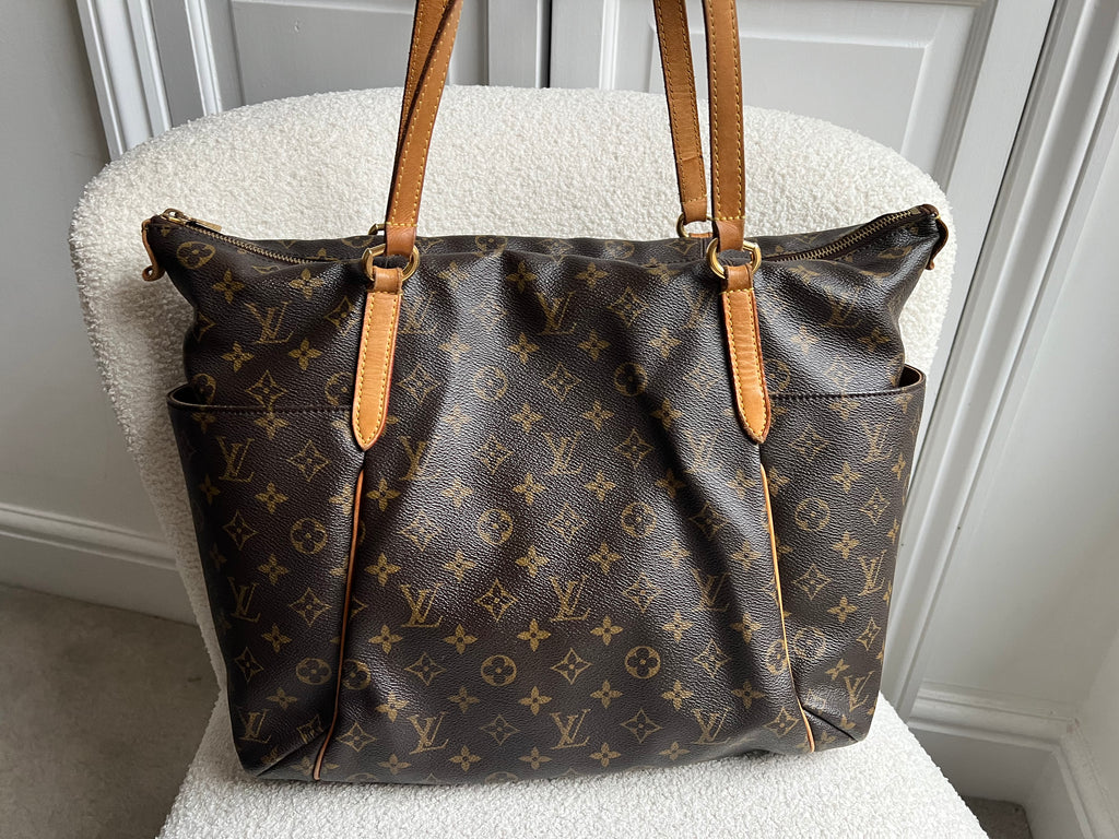 Louis Vuitton Totally MM Tote in Monogram canvas with gold hardware. The Totally is an easy to wear, lightweight shoulder tote and is a classic, practical bag. The larger size of the totally and is roomy inside making it ideal for a day to day or work bag. Can be carried in the crook of the arm or comfortably over the shoulder using the two top handles. Great alternative to the Neverfull with sturdier handles and a more secure (zipped) closure.