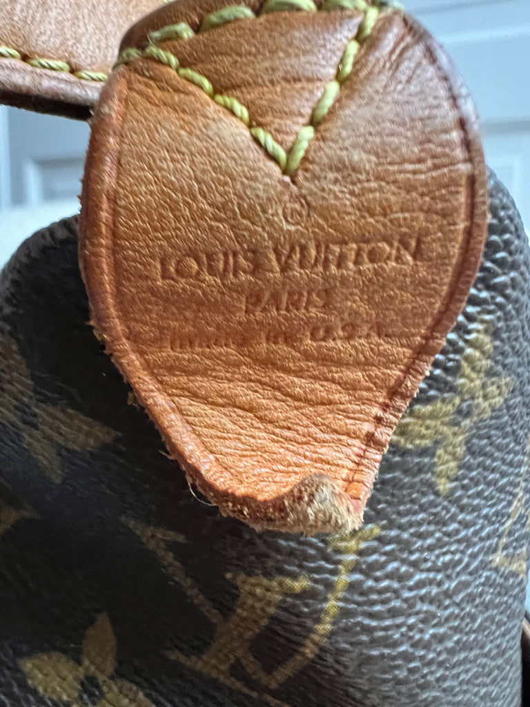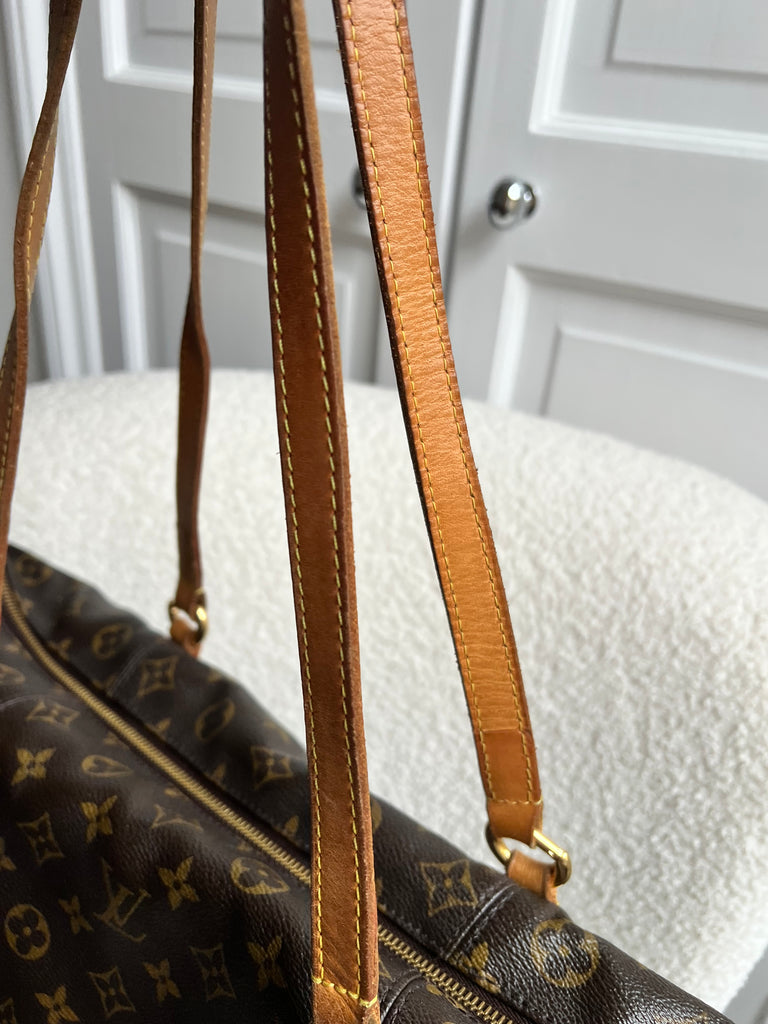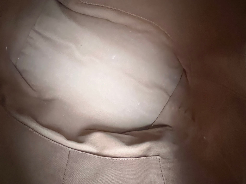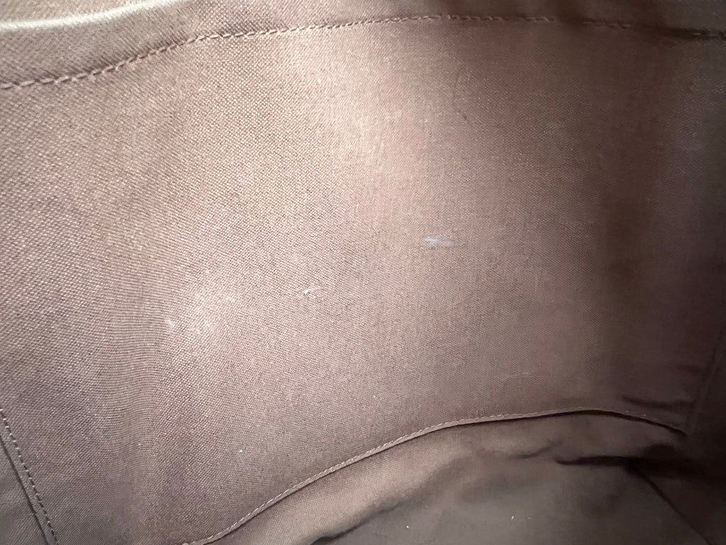 Exterior: Overall good condition with general signs of wear. Some darkening and softening to handles. Small marks to canvas and leather trim. Some slouching and creasing to the top where it sinks.