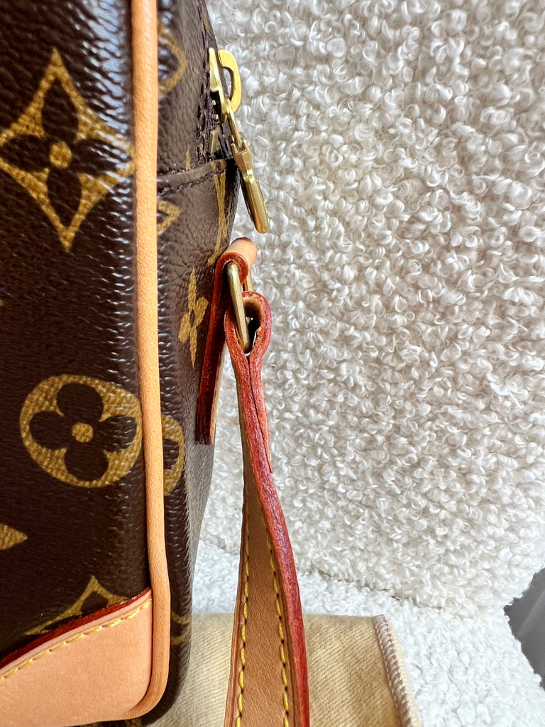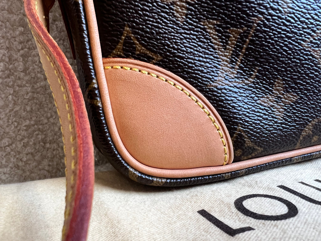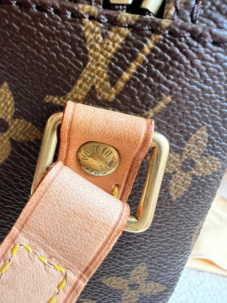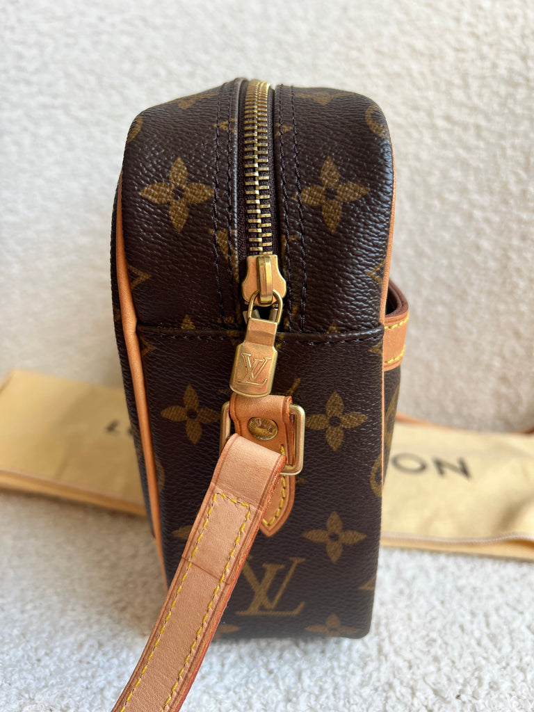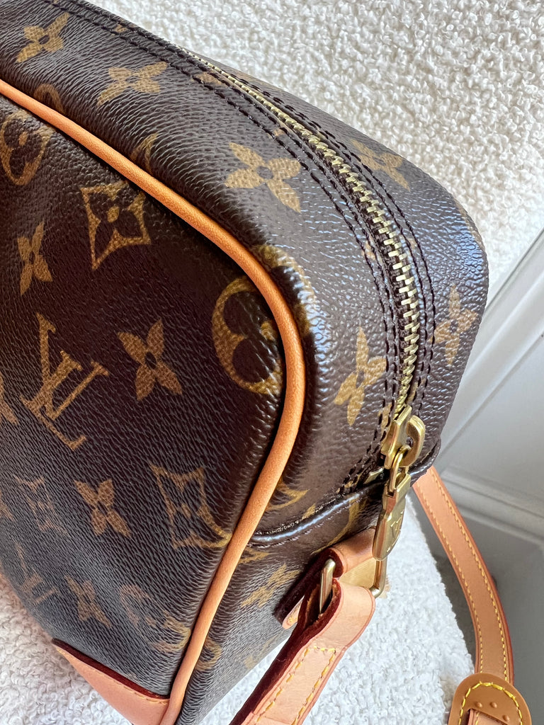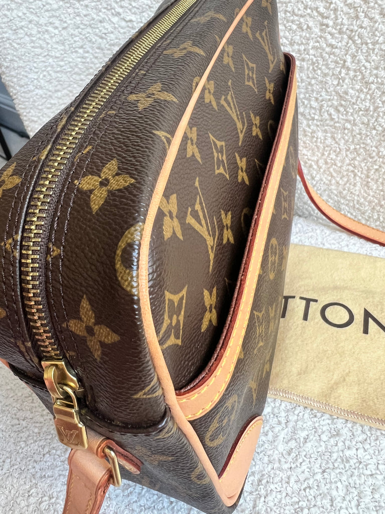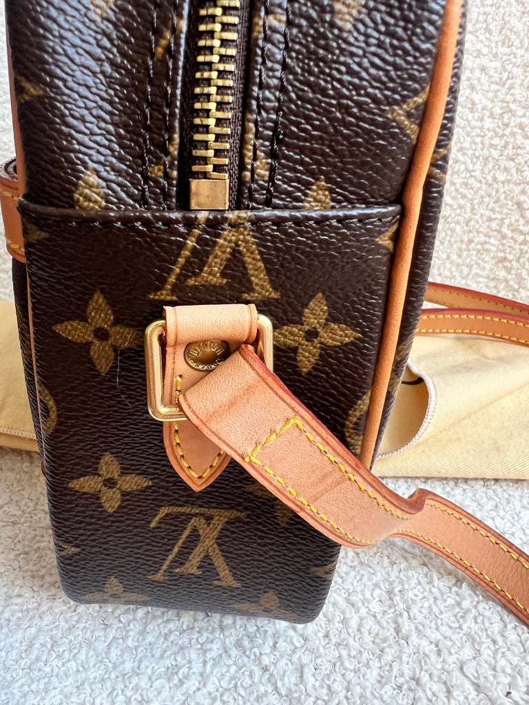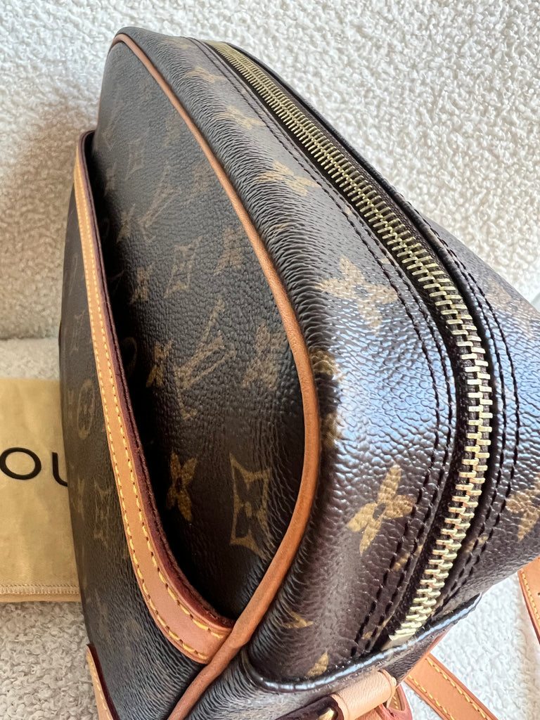 Louis Vuitton Trocadero Bag in Monogram canvas. The cross body style is medium in size and features a leather strap. Front compartment and main compartment with cowhide leather trim. Fairly structured in shape, ideal for day to day use. Can be carried over shoulder or cross body.