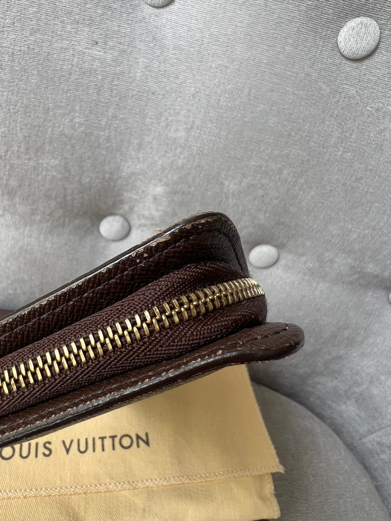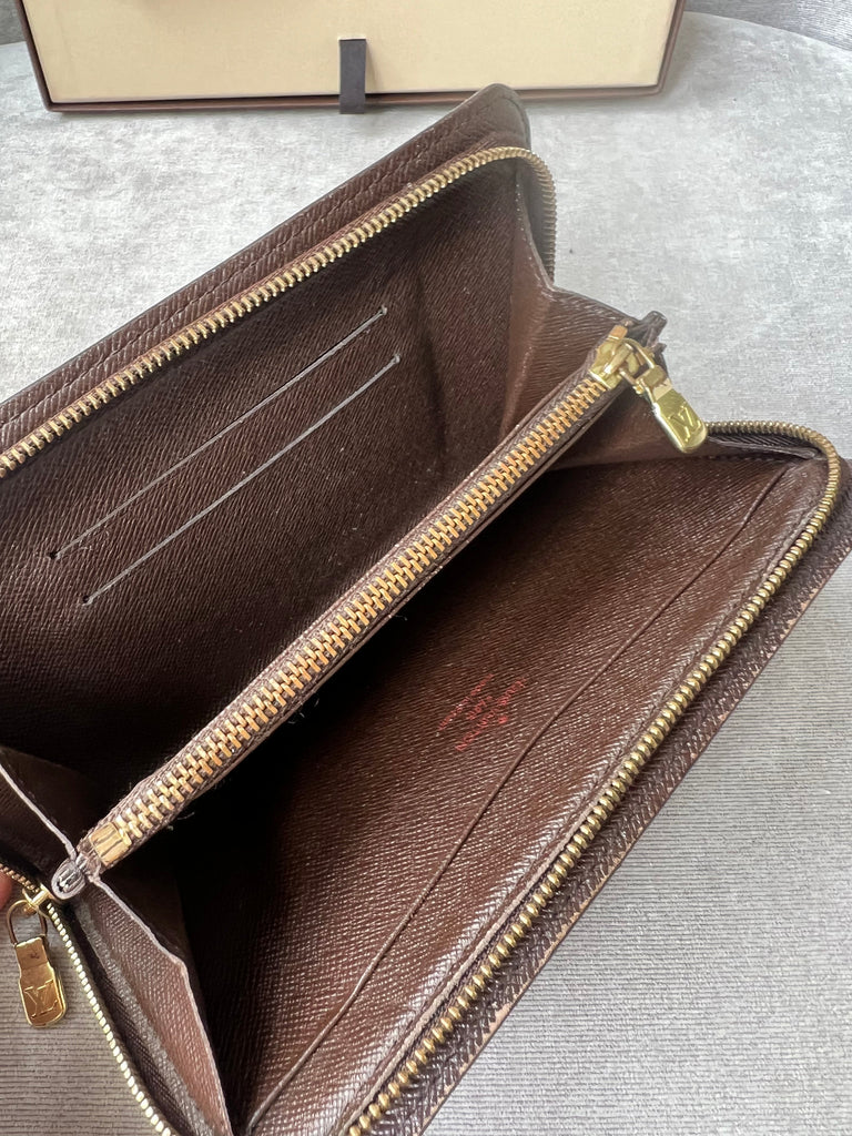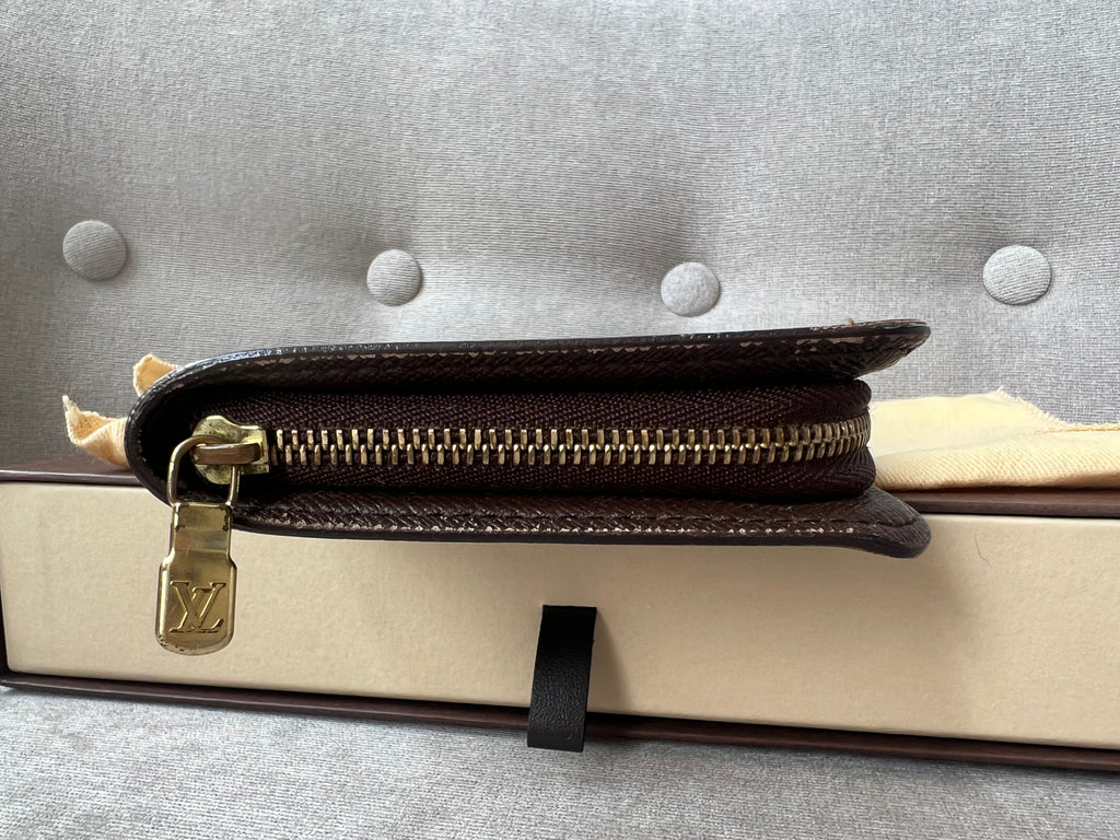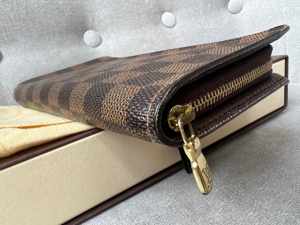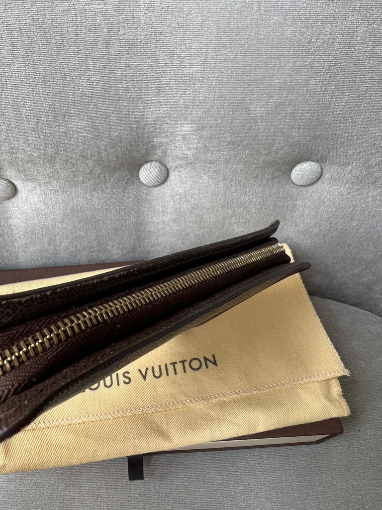 Louis Vuitton Zip Around Wallet in Damier Ebene and Brown