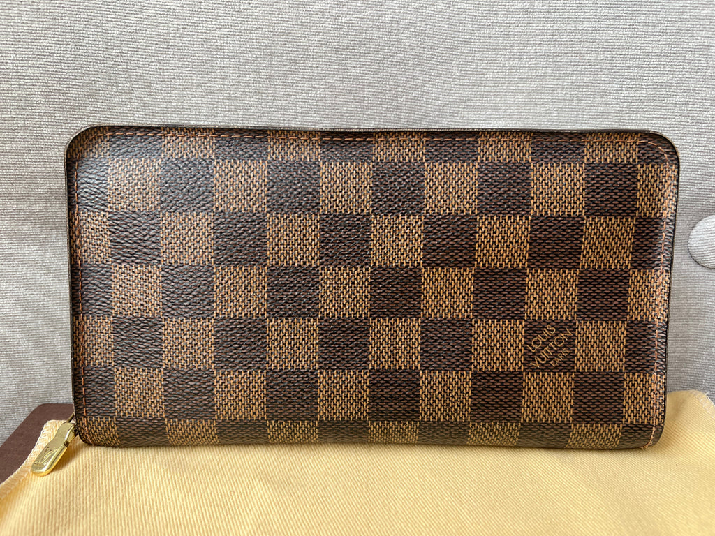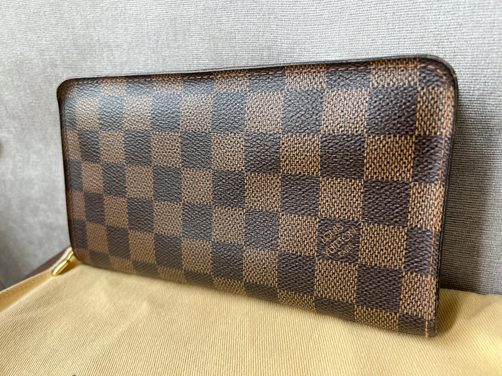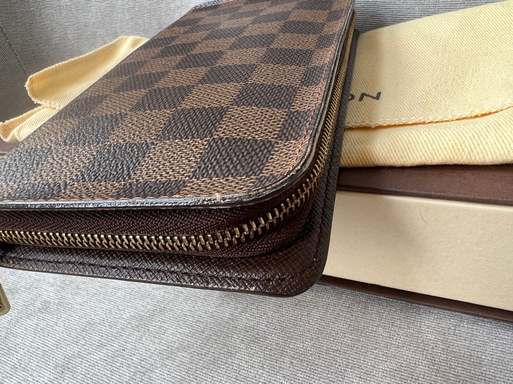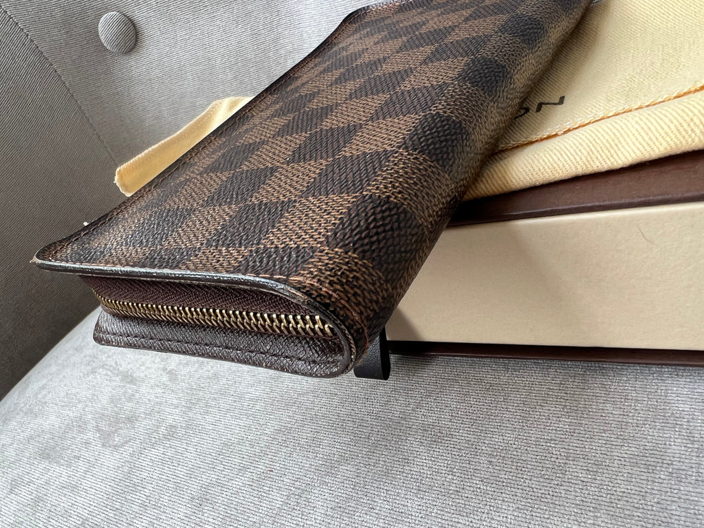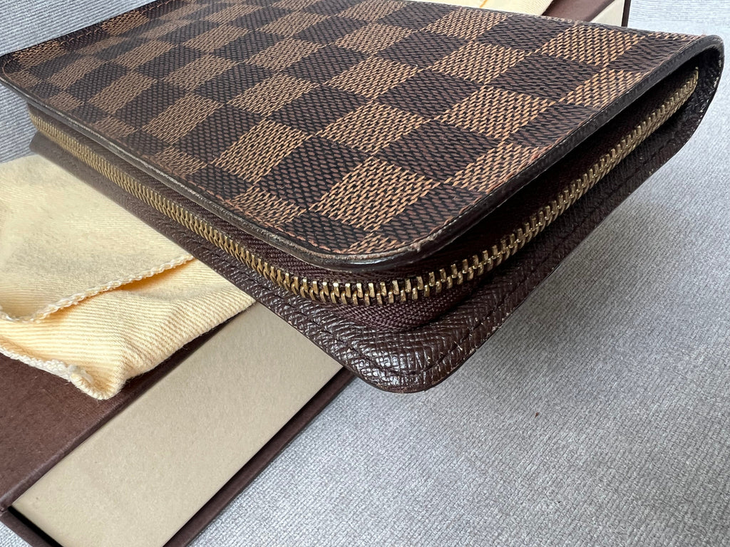 Louis Vuitton Zip Around Wallet in Damier Ebene and Brown