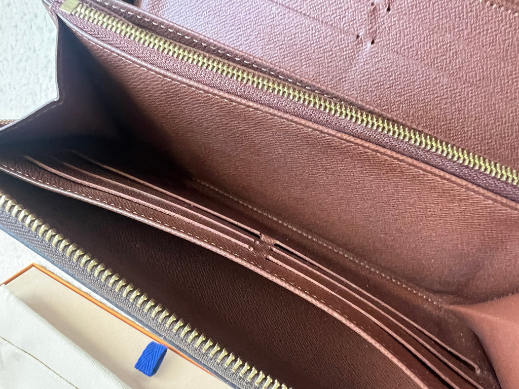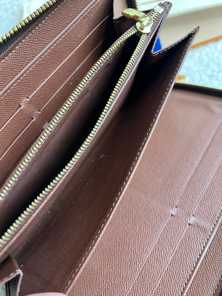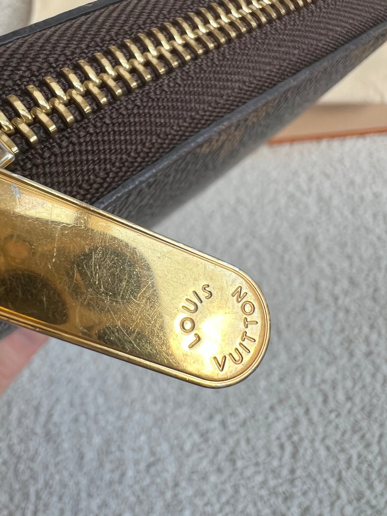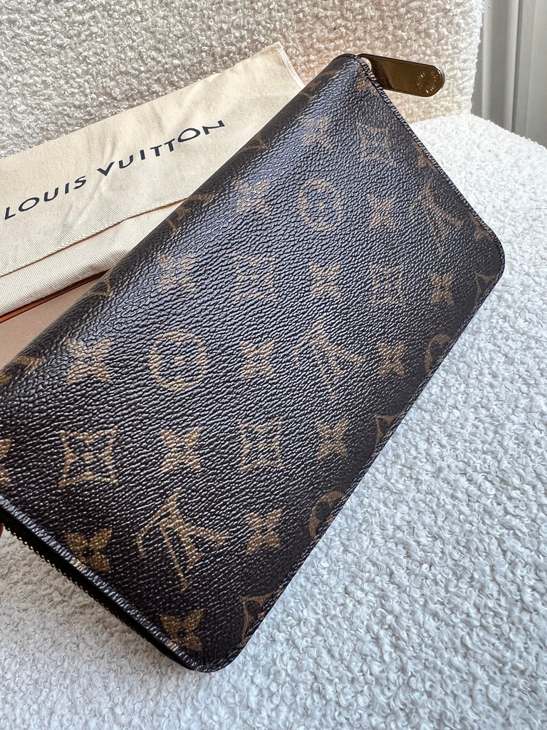 Louis Vuitton Zippy Organiser in Monogram Canvas and Brown. The Zippy Organiser is a quintessential Louis Vuitton piece with a sophisticated yet practical design. Inside, it features a large pouch for travel tickets, several card slots and a zipped pocket for coins. Crafted from the House's distinctive Monogram canvas, the wallet is finished in style with a polished gold-tone zip around the edge.