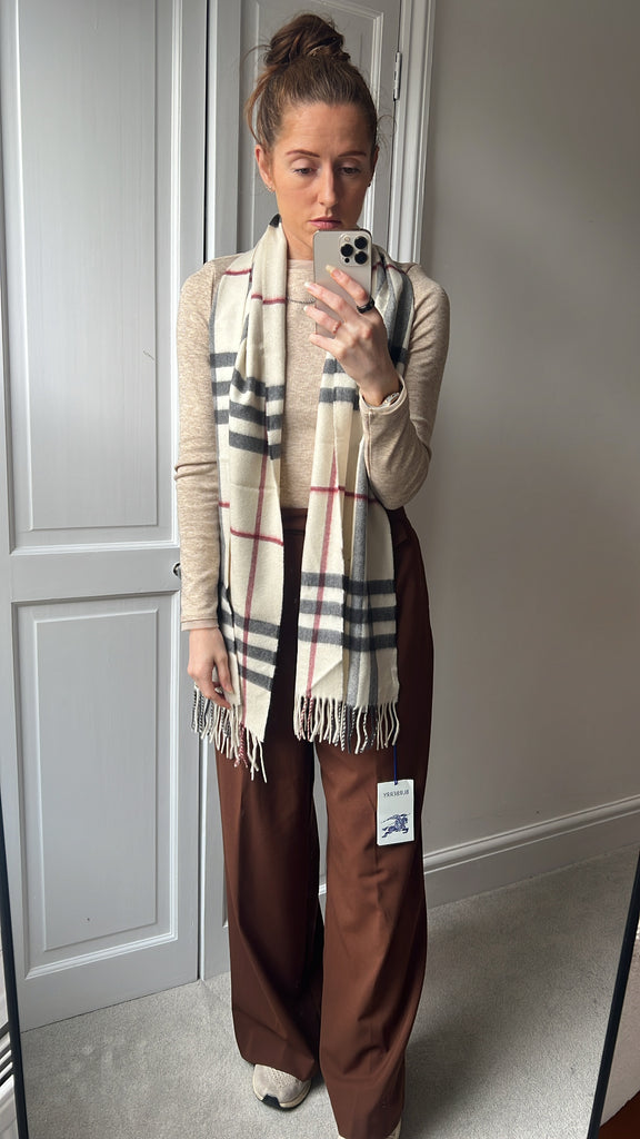 Burberry Classic Check Stone Cashmere Scarf (RRP £435)