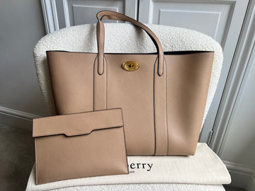 Mulberry Bayswater Tote in Maple Small Classic Grain with gold hardware. This practical, easy to wear tote is spacious and sophisticated. Featuring the iconic postmans lock closure, and suede lining, it is perfect for day to day wear for those who prefer a practical, larger sized bag. Comes with inner removable pouch. Can be carried over the shoulder or in the crook of the arm.
