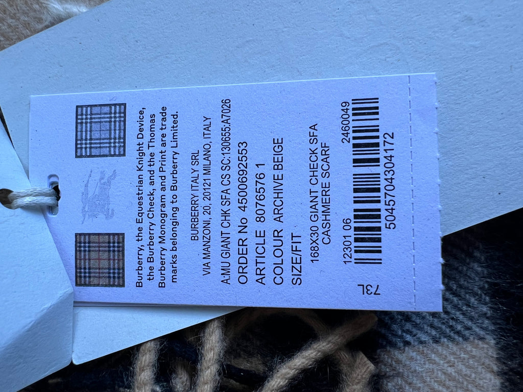 Burberry Classic Check Archive Beige Cashmere Scarf (RRP £435)