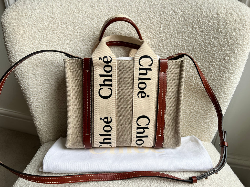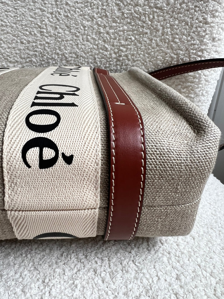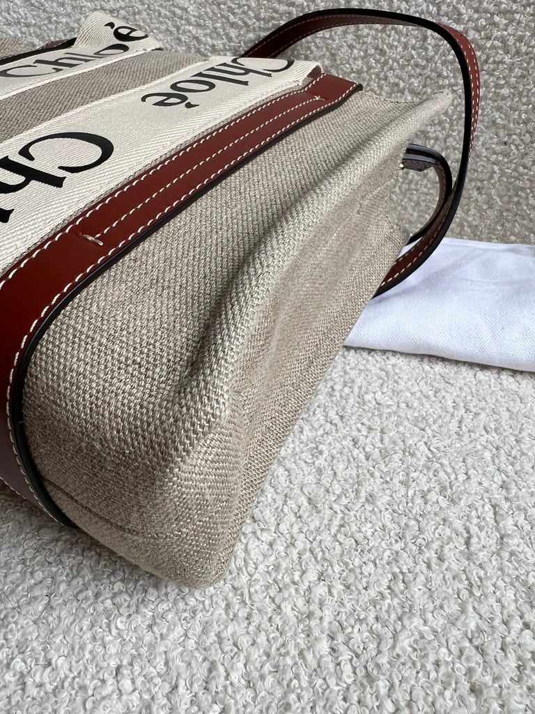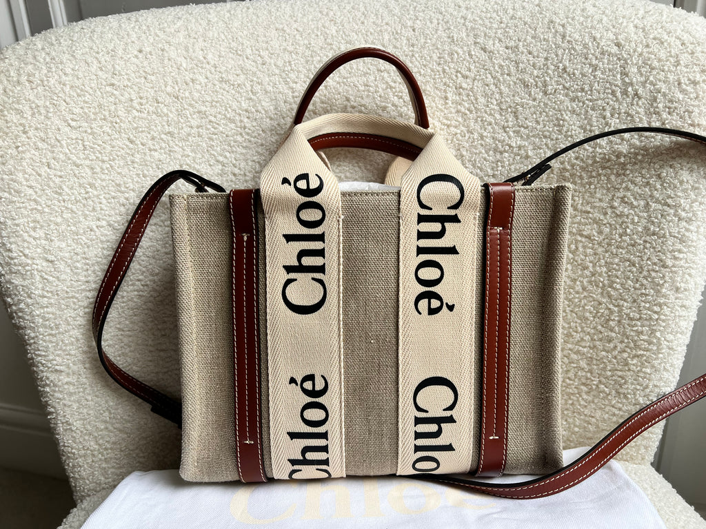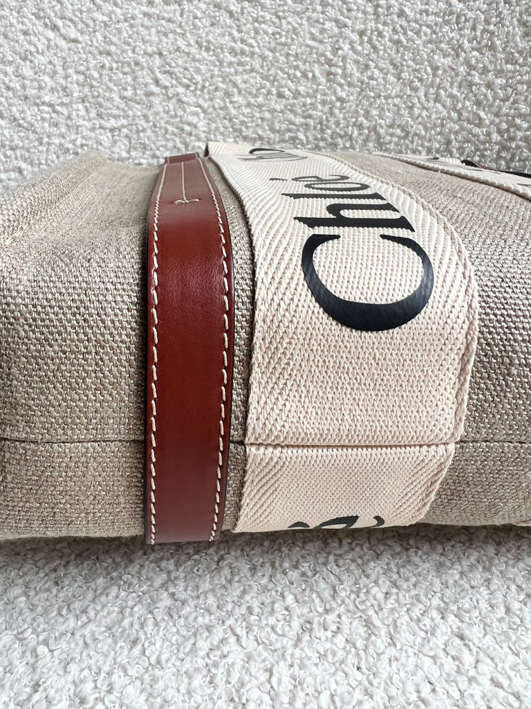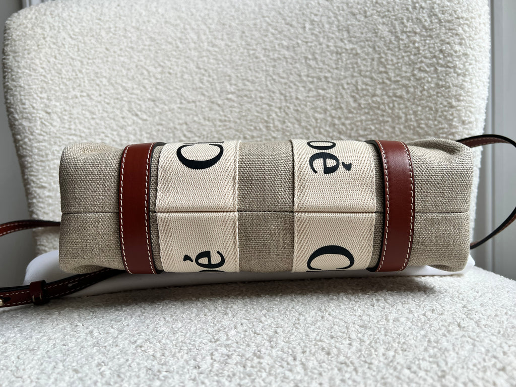 Chloe Small Soft Tan Linen Woody Tote Bag (£890)