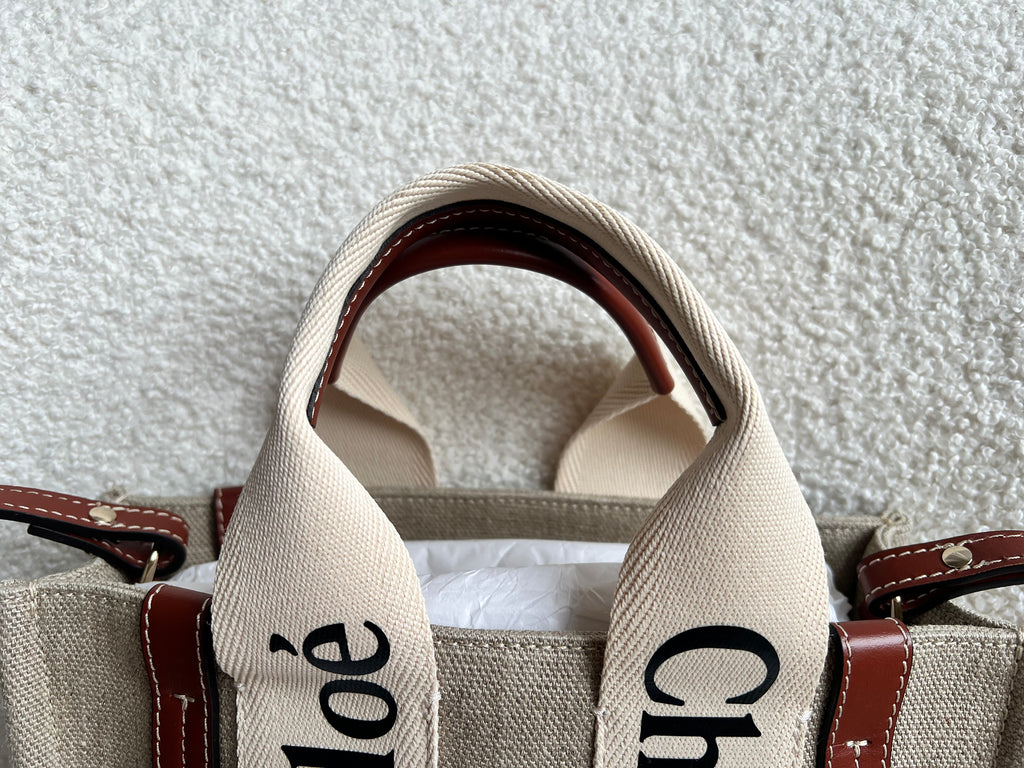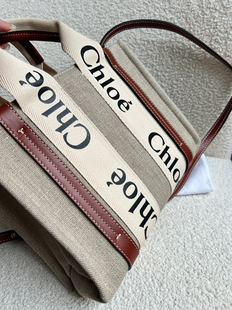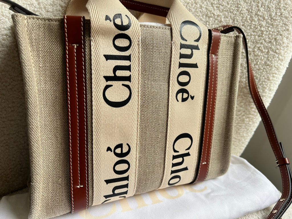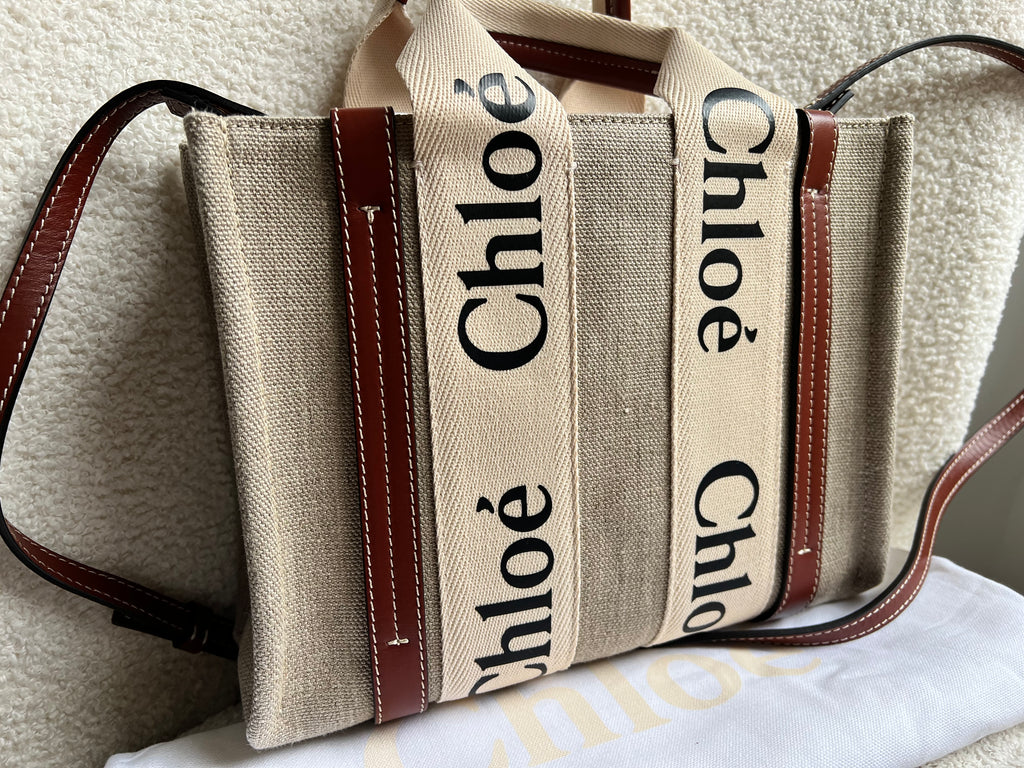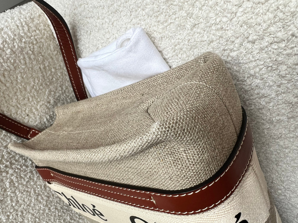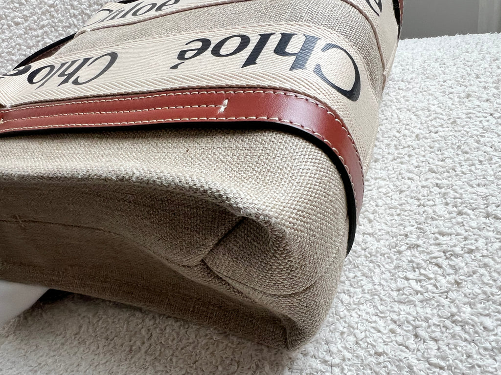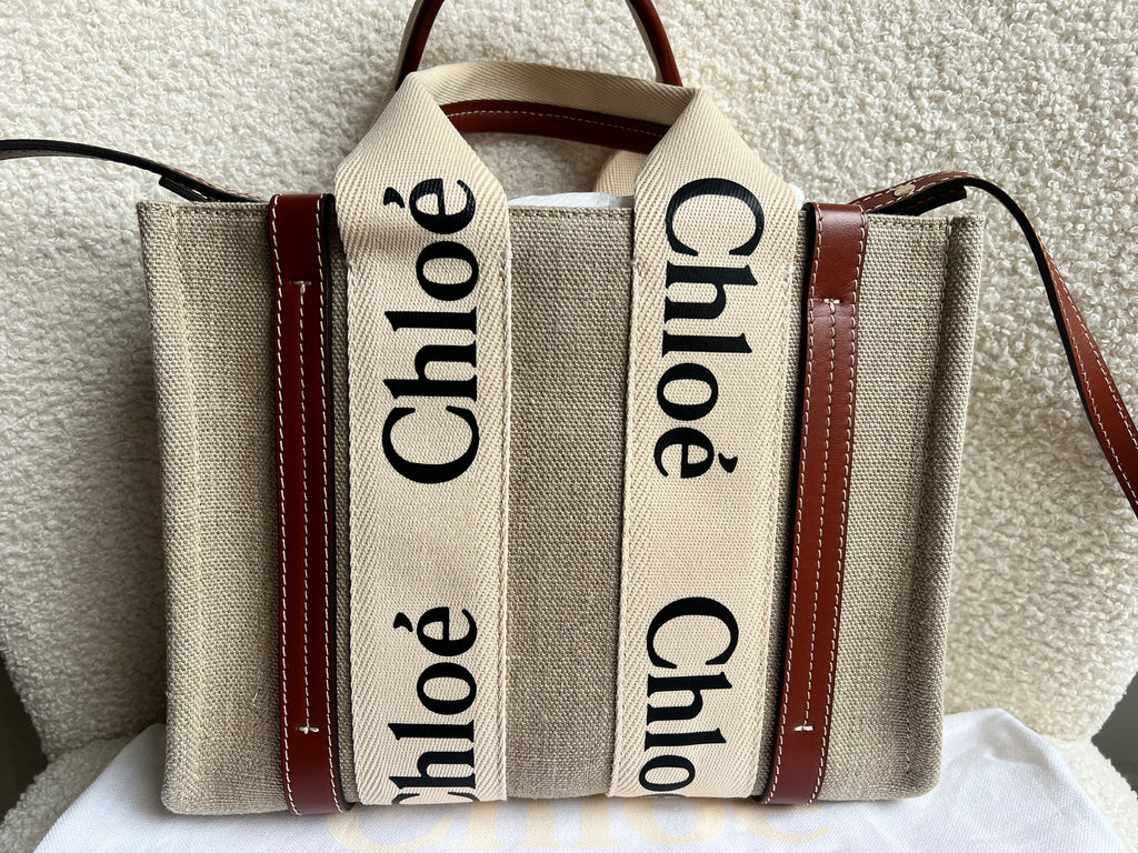 Chloe Small Soft Tan Linen Woody Tote Bag (£890)