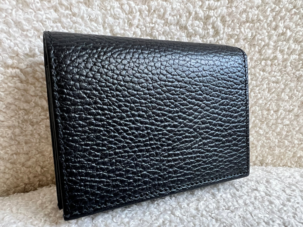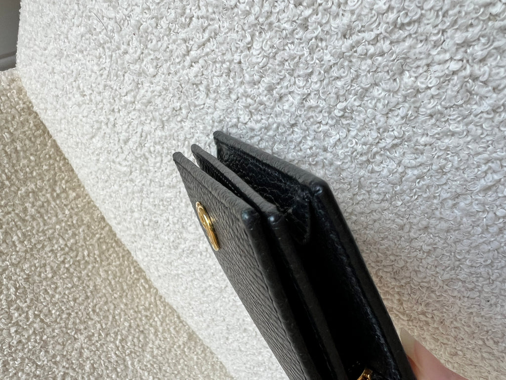 Gucci card case wallet in black tanned leather with small double G metal detail.