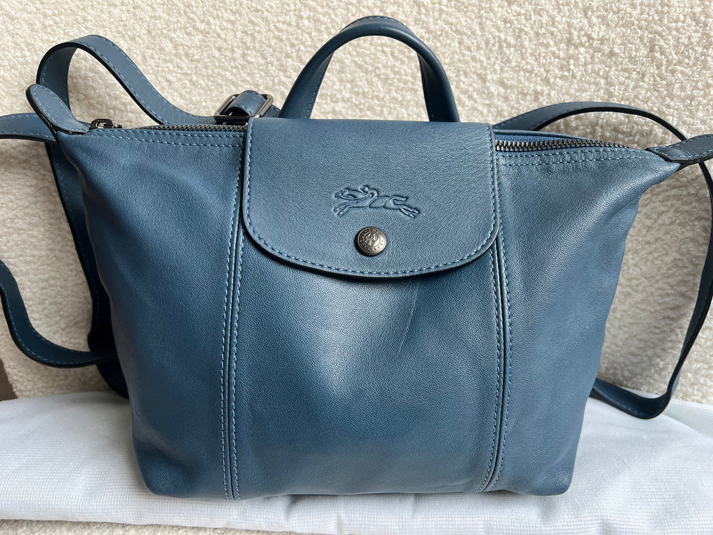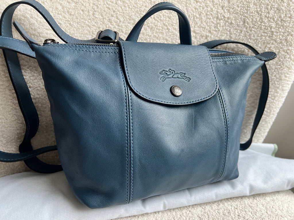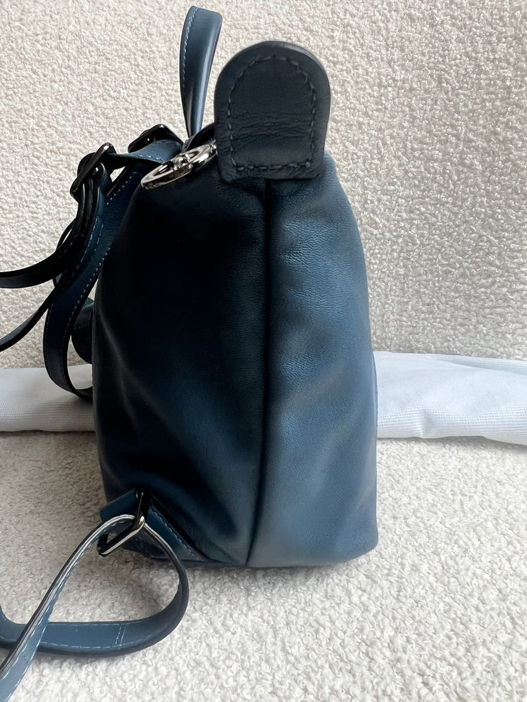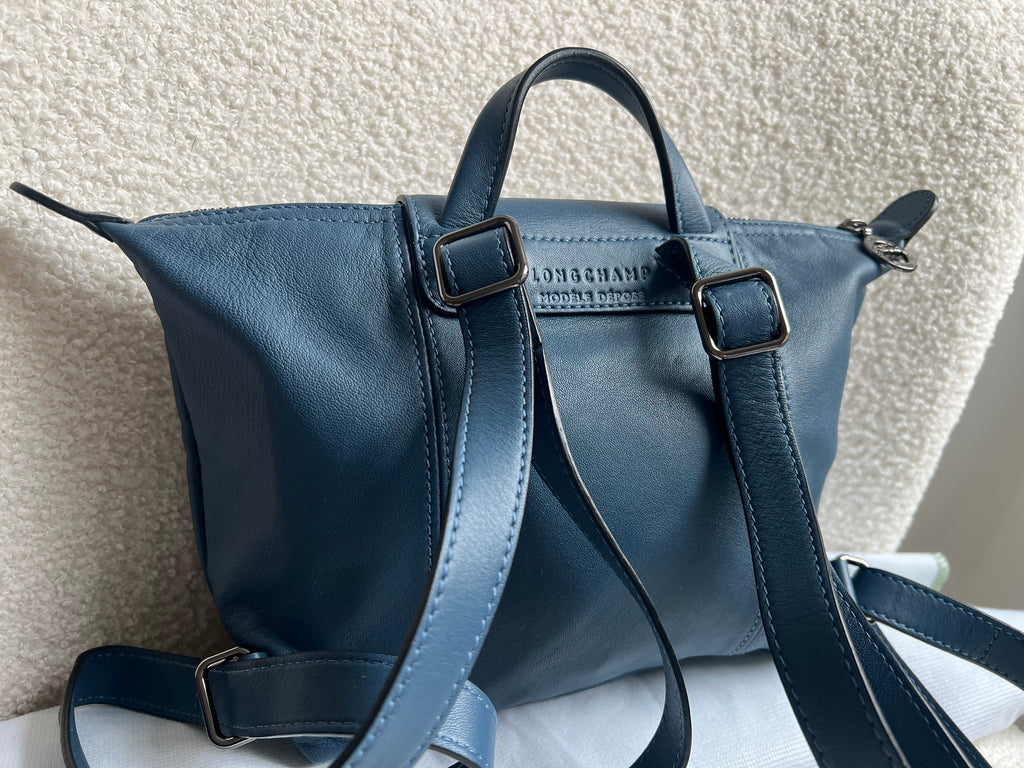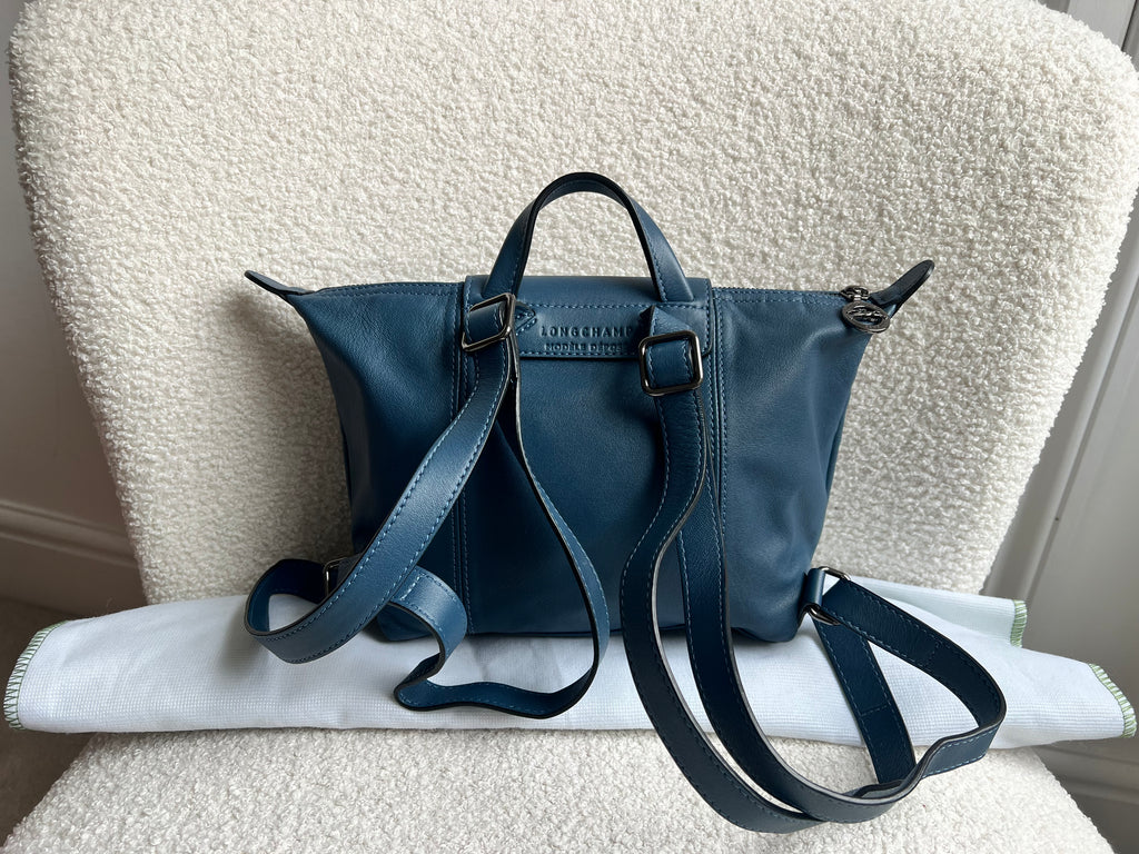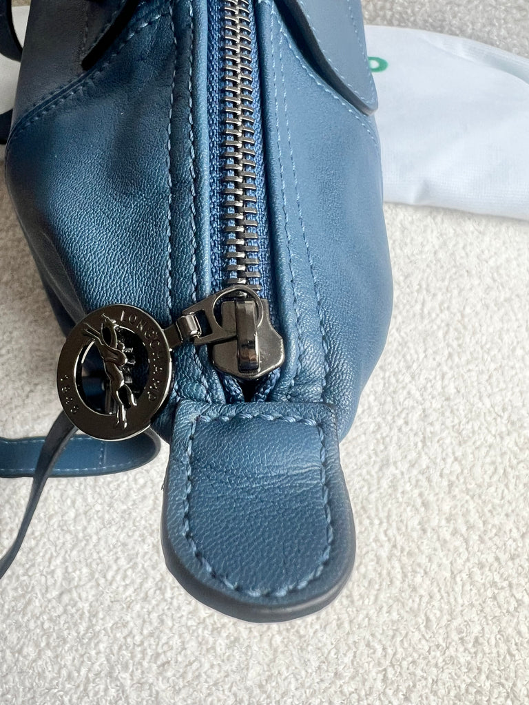 Longchamp Blue Leather Pliage Mini Backpack (RRP £320)