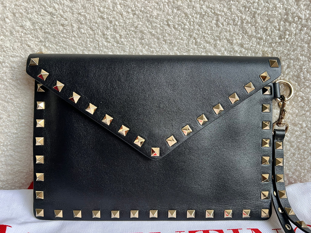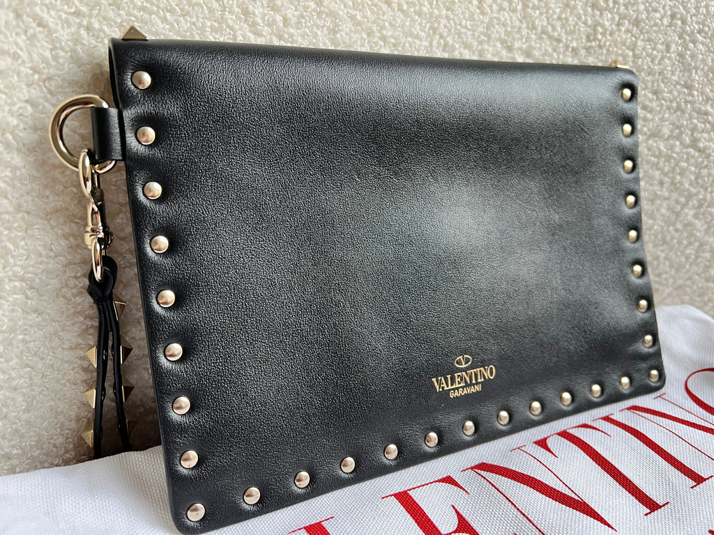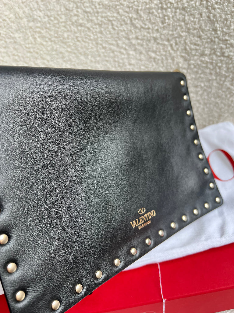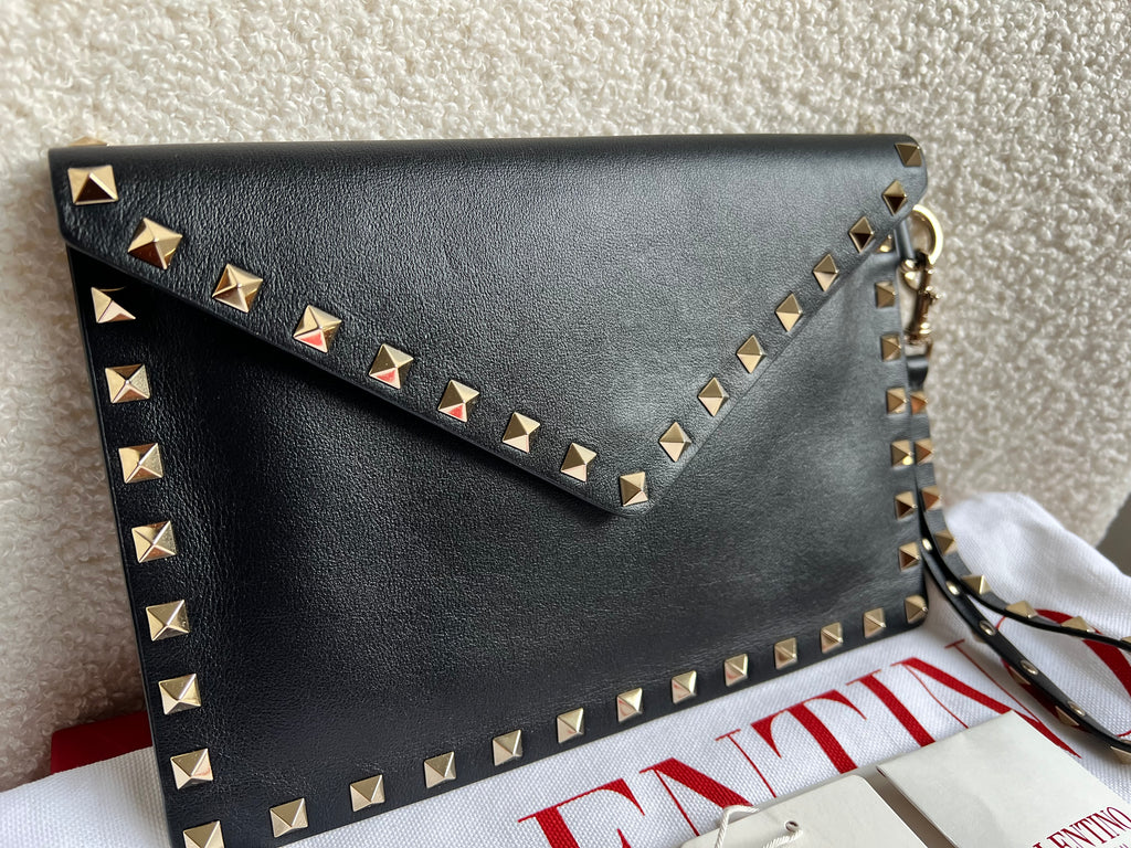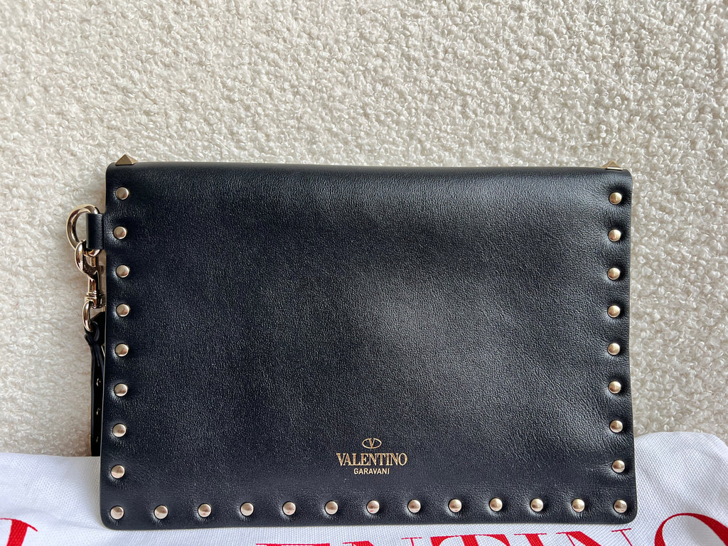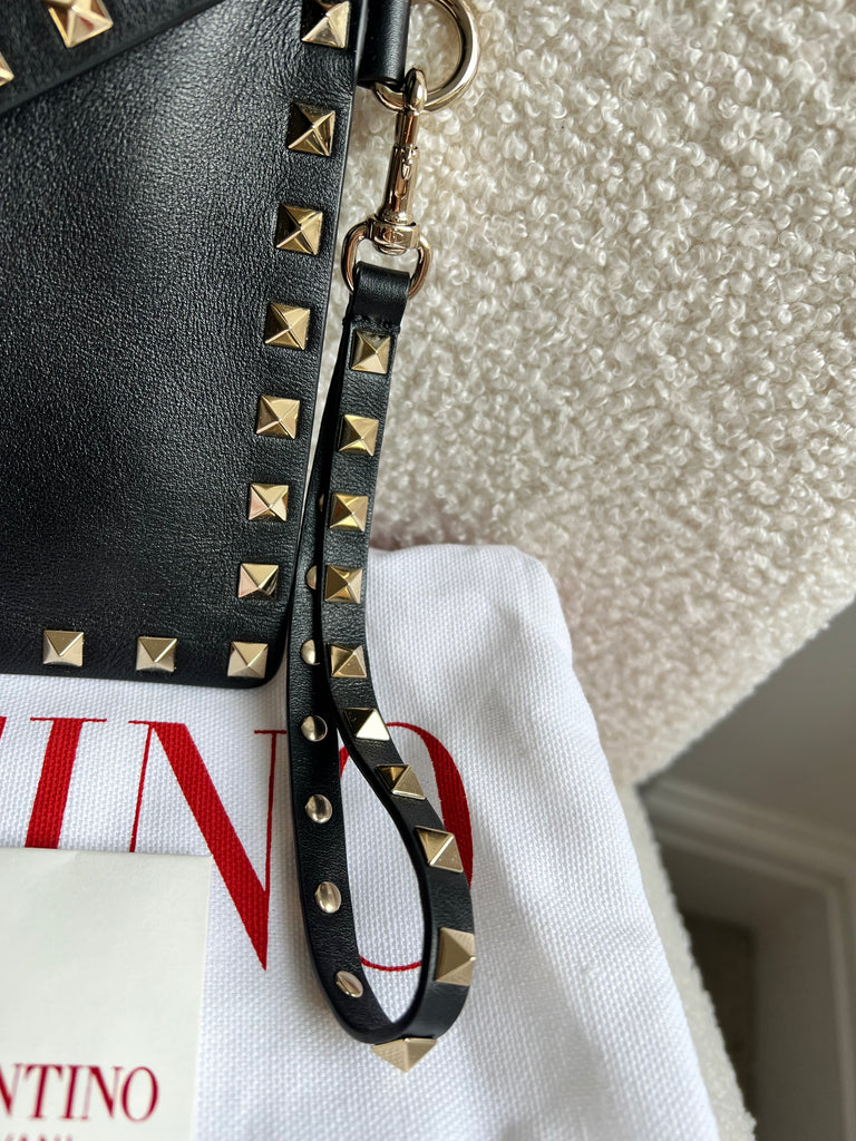 Valentino Garavani Rockstud Calfskin Clutch Pouch Black (RRP £570)