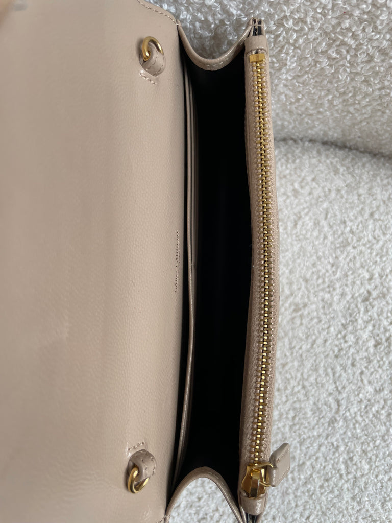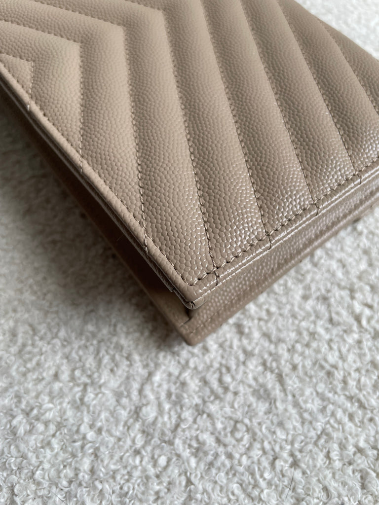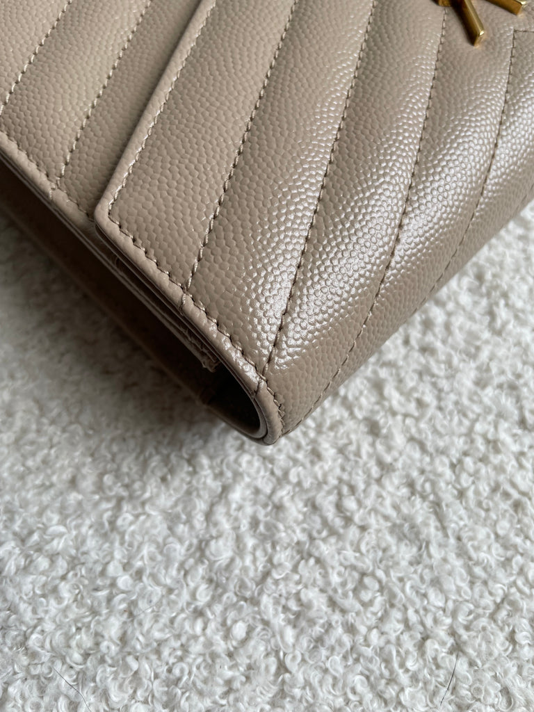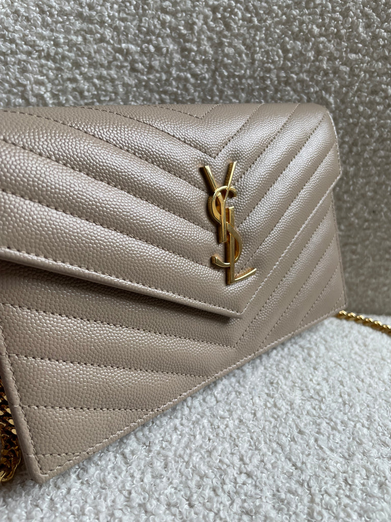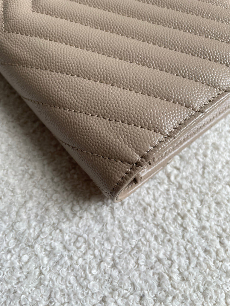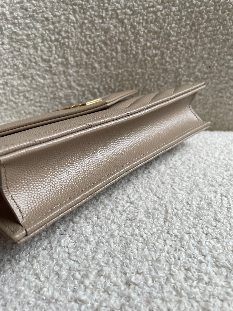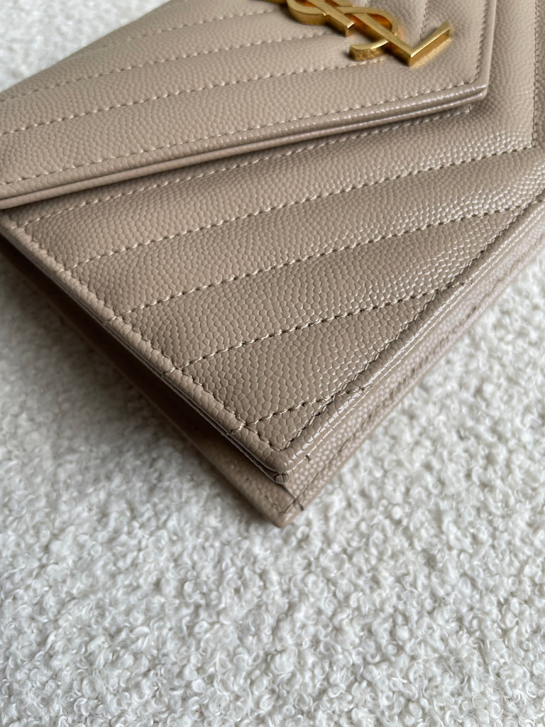 Yves Saint Laurent (YSL) Beige Cassandra Envelope Chain Wallet (RRP £850)