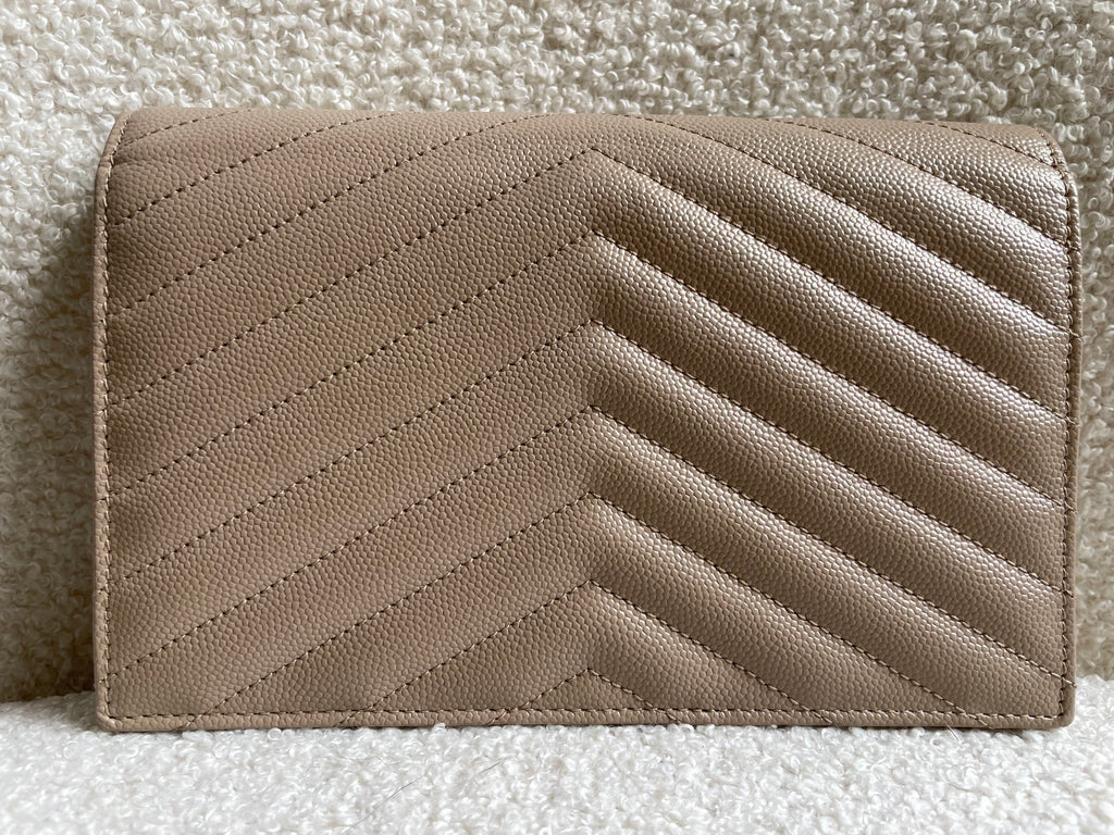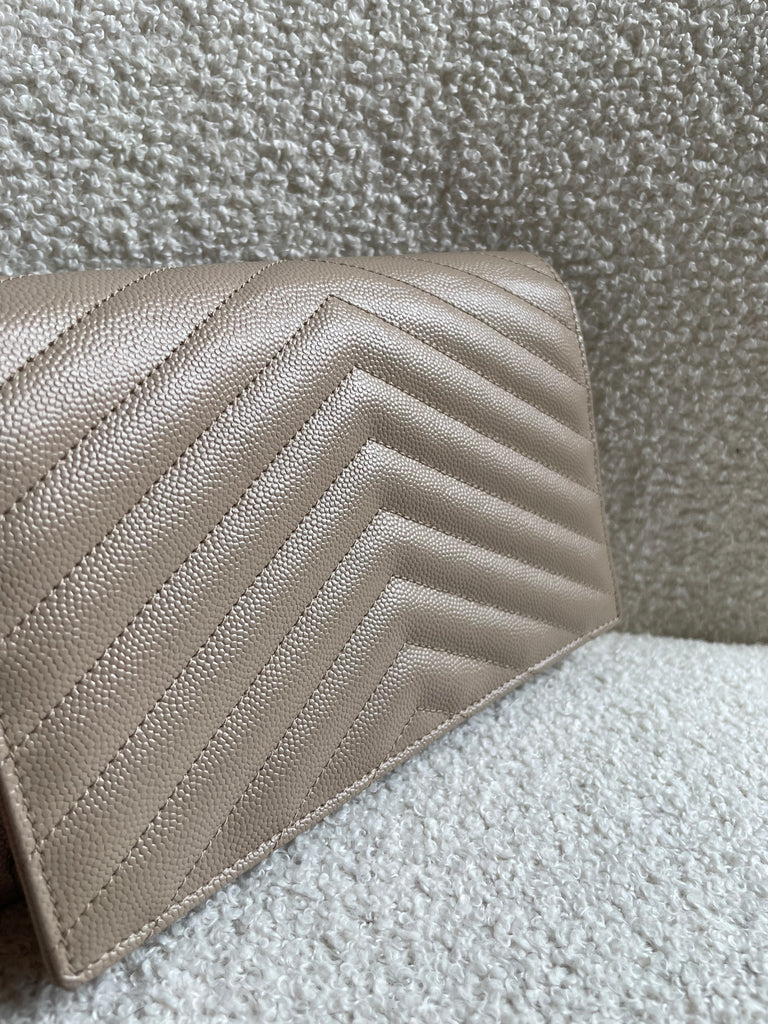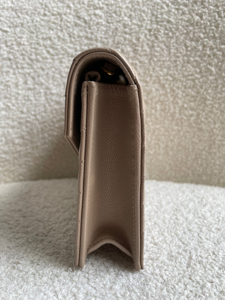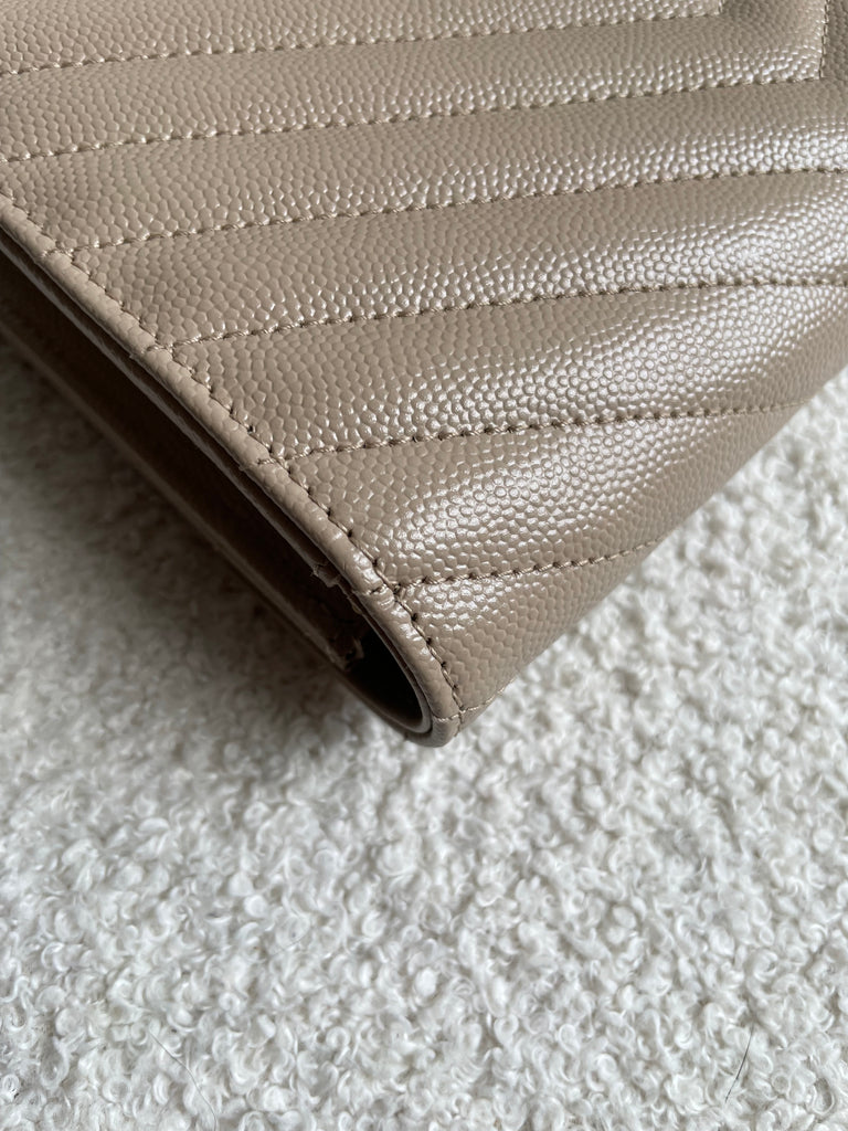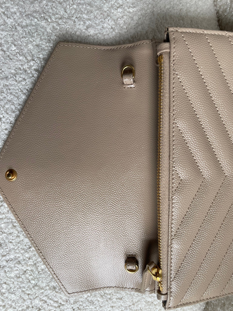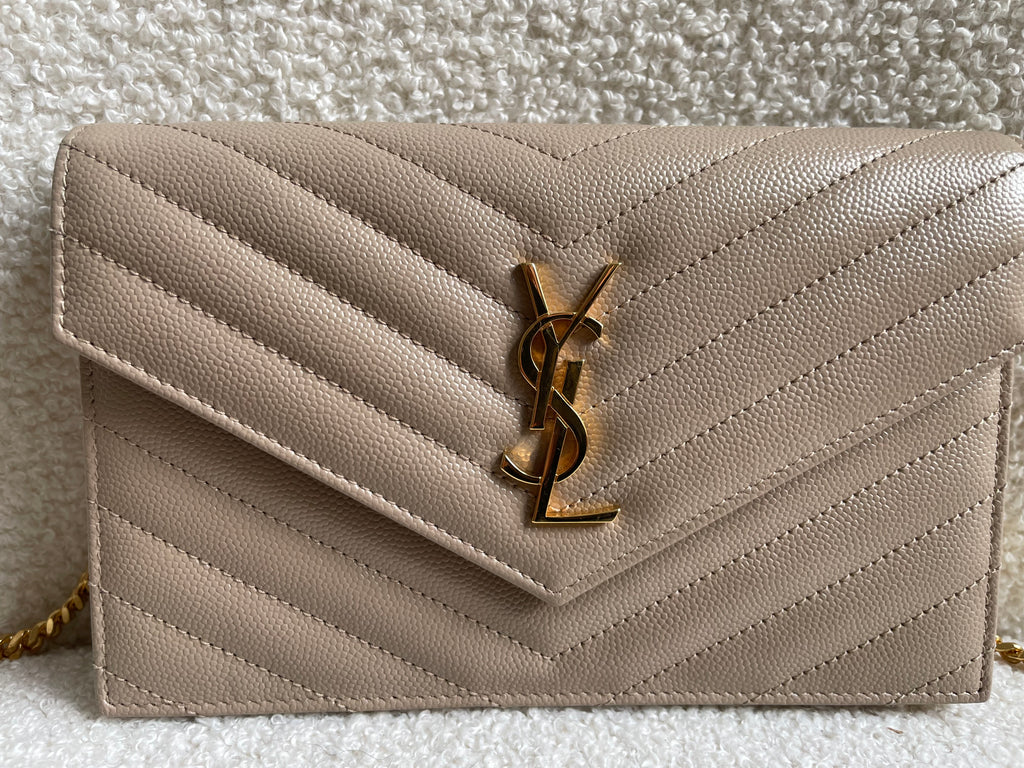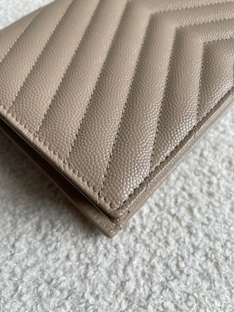 Yves Saint Laurent (YSL) Beige Cassandra Envelope Chain Wallet (RRP £850)