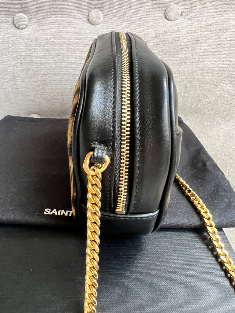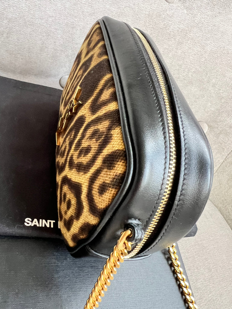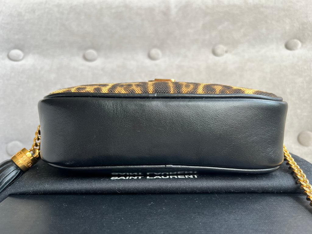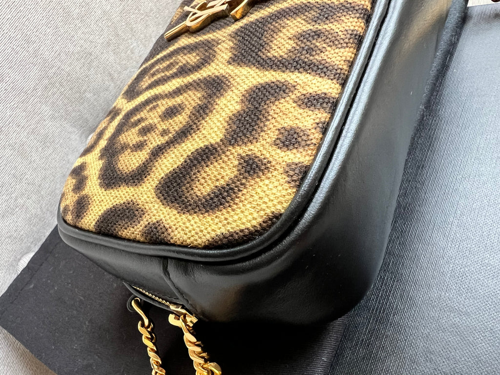 Yves Saint Laurent (YSL) Black and Leopard Print Mini Lou Camera Bag