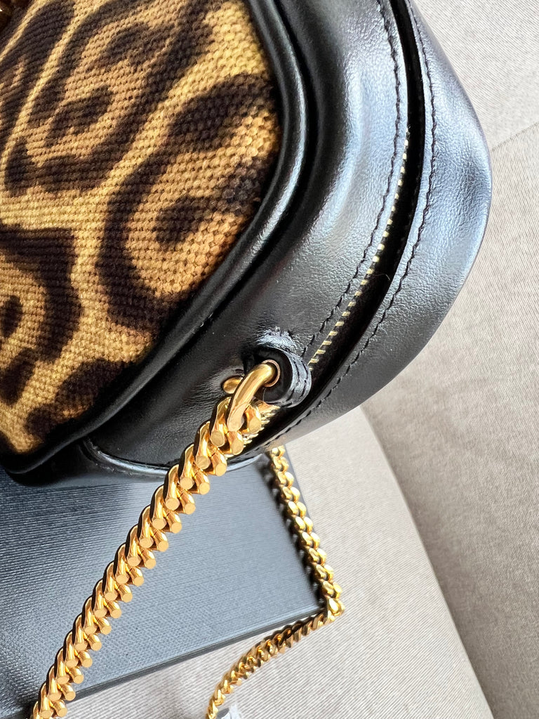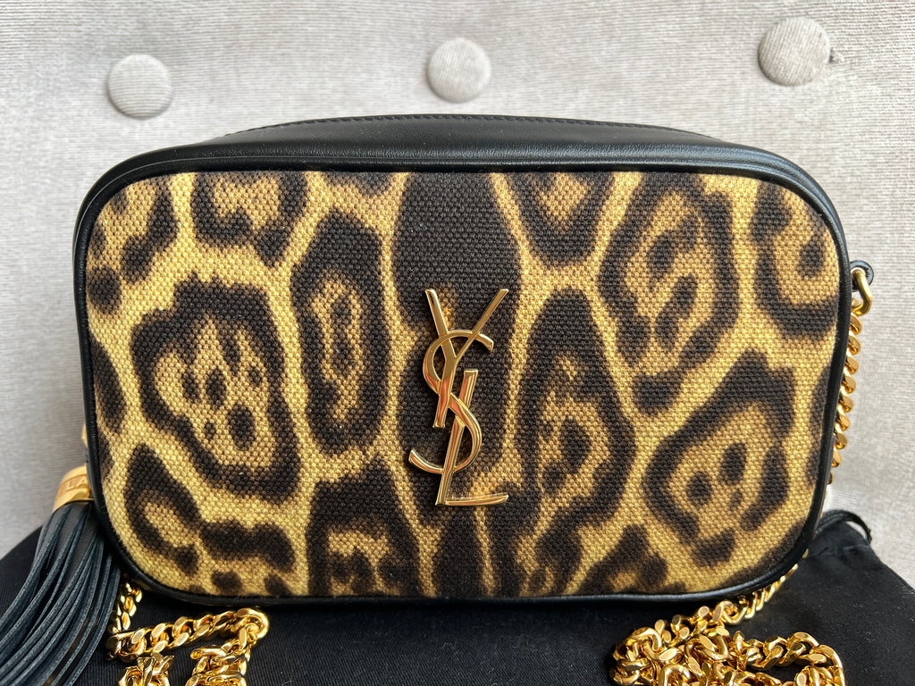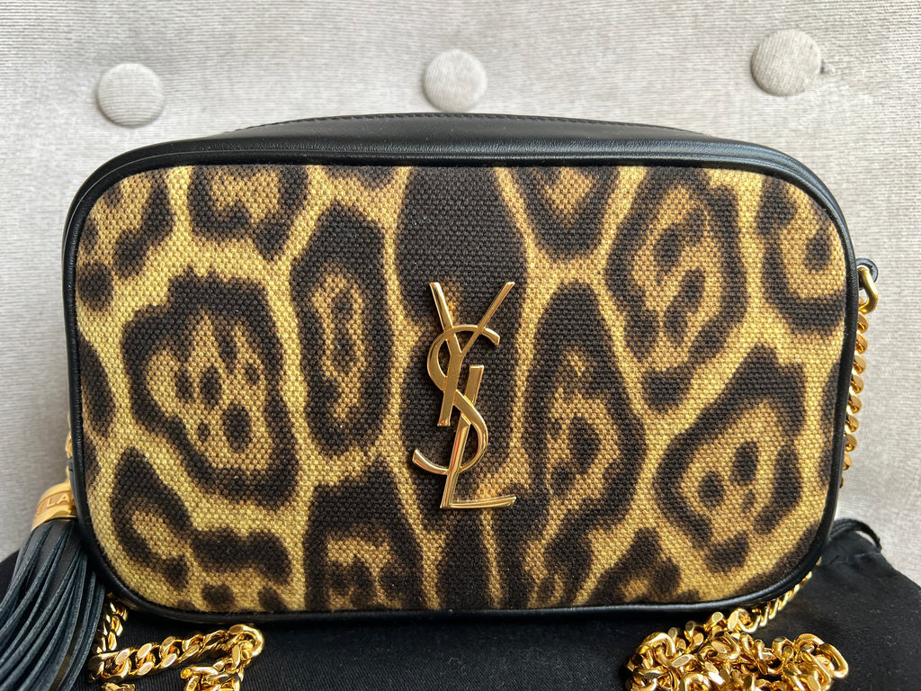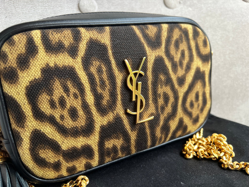 Yves Saint Laurent (YSL) Black and Leopard Print Mini Lou Camera Bag