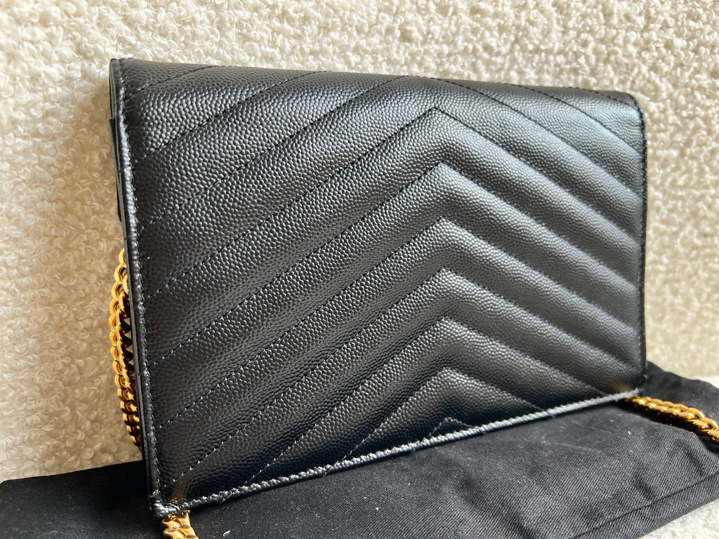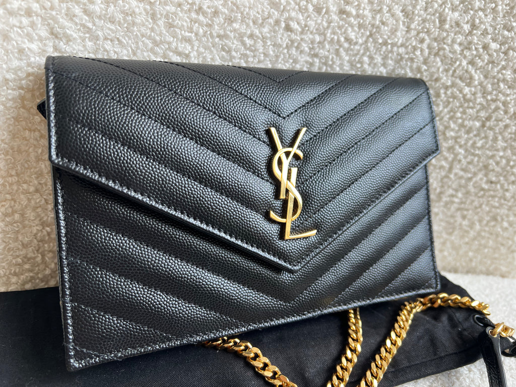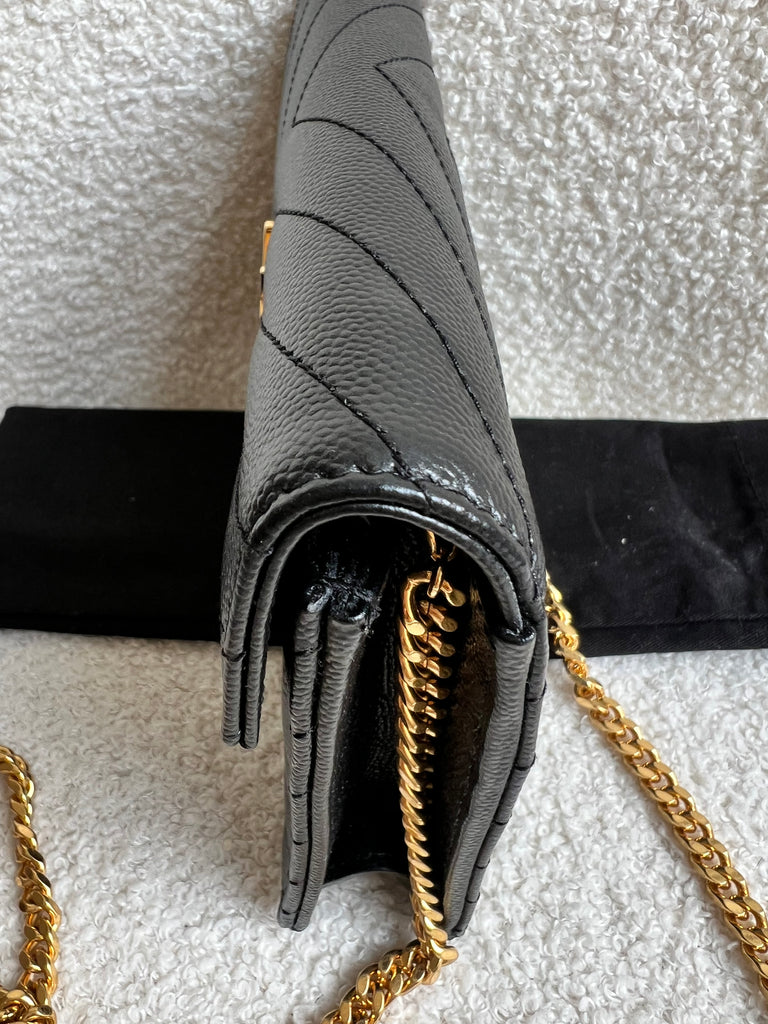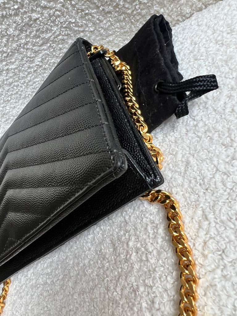 Yves Saint Laurent (YSL) Black Cassandre Envelope Chain Wallet (RRP £850)