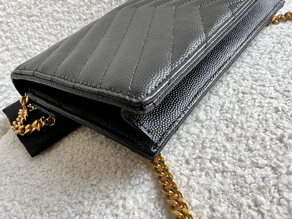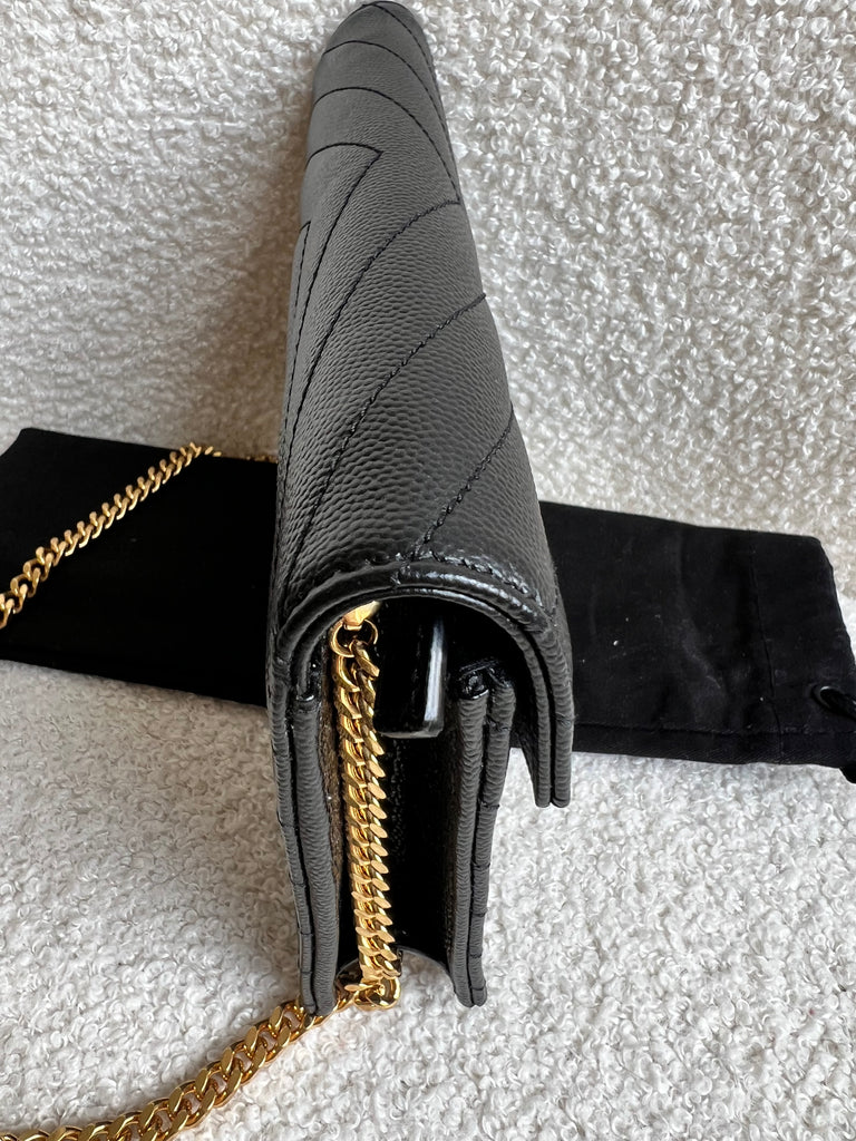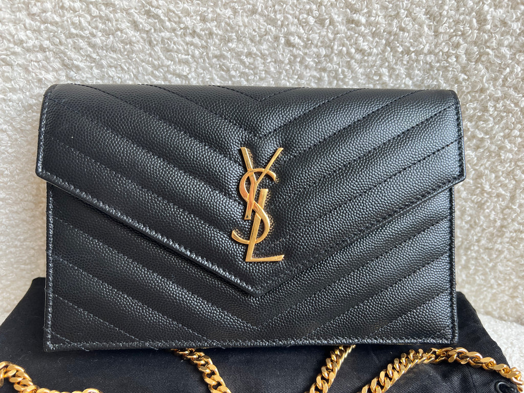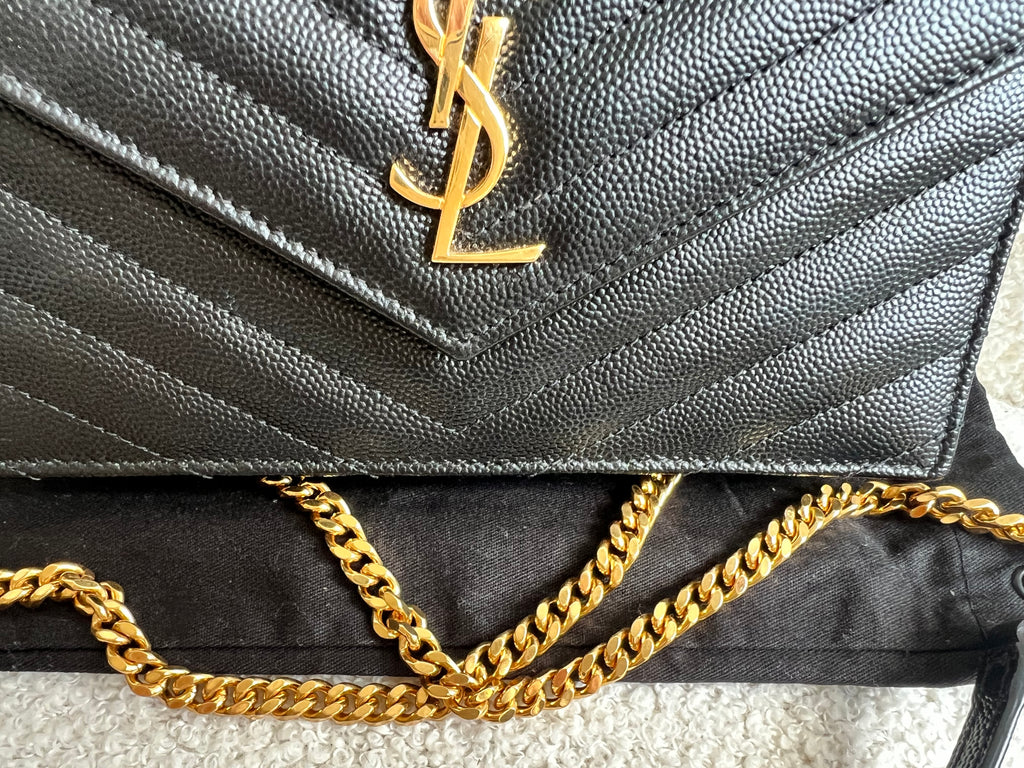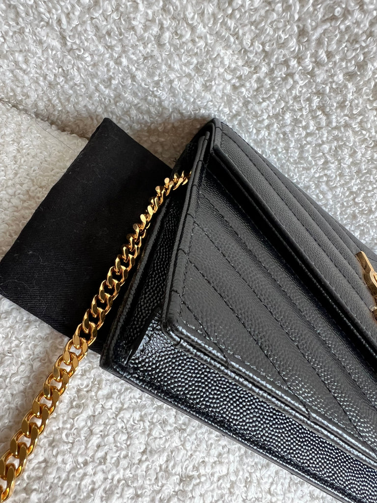 Yves Saint Laurent (YSL) Black Cassandre Envelope Chain Wallet (RRP £850)