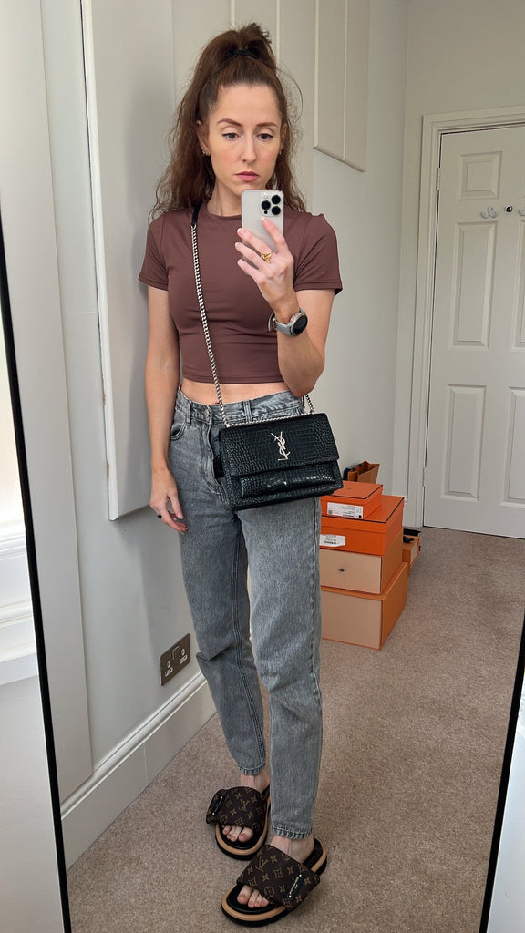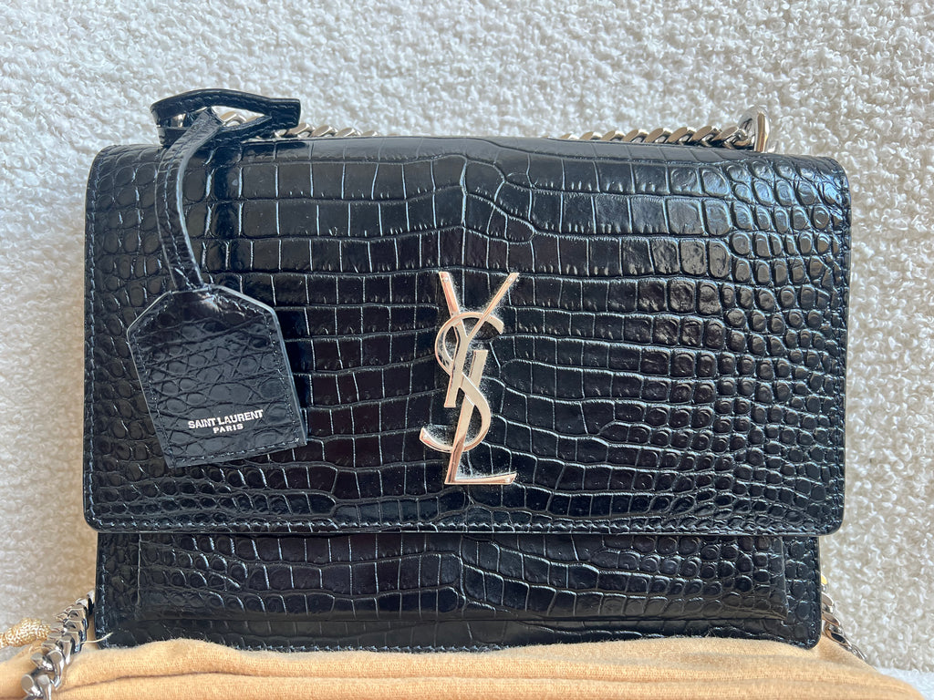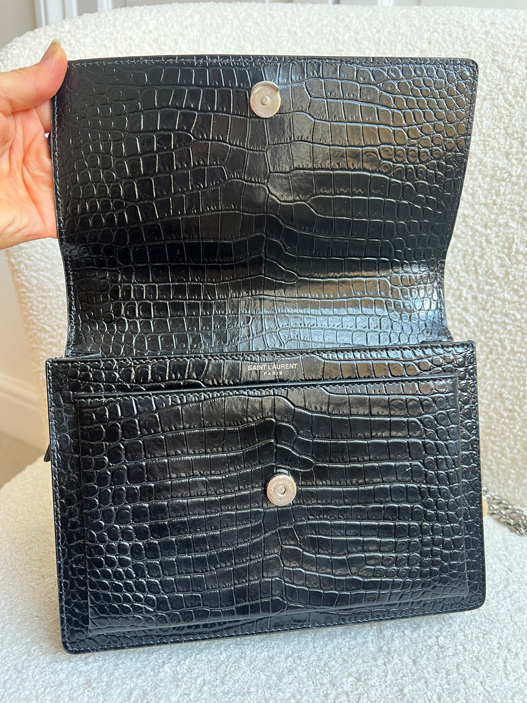 Yves Saint Laurent (YSL) Black Croc Medium Sunset with Silver Hardware (RRP £2,200)