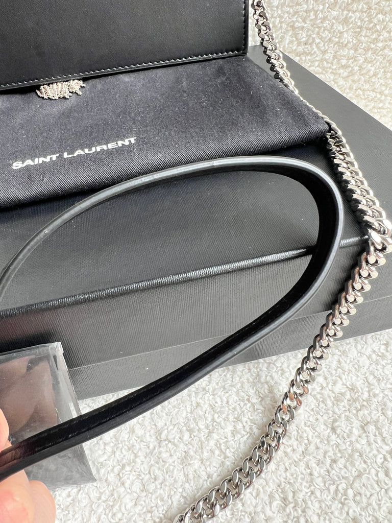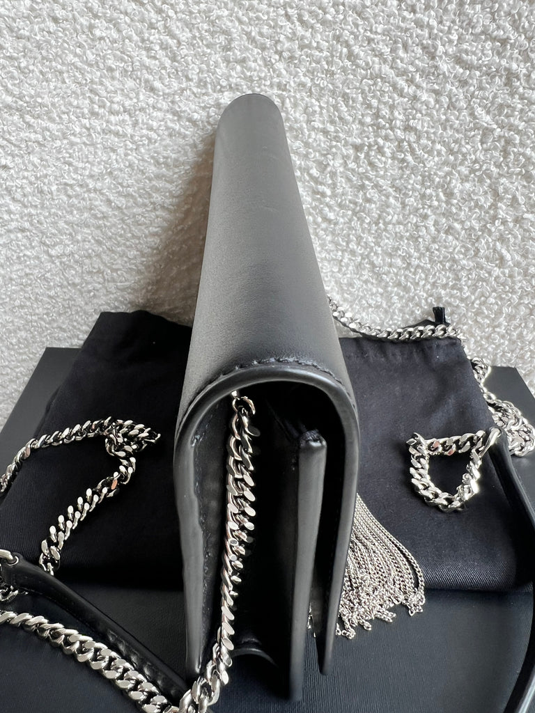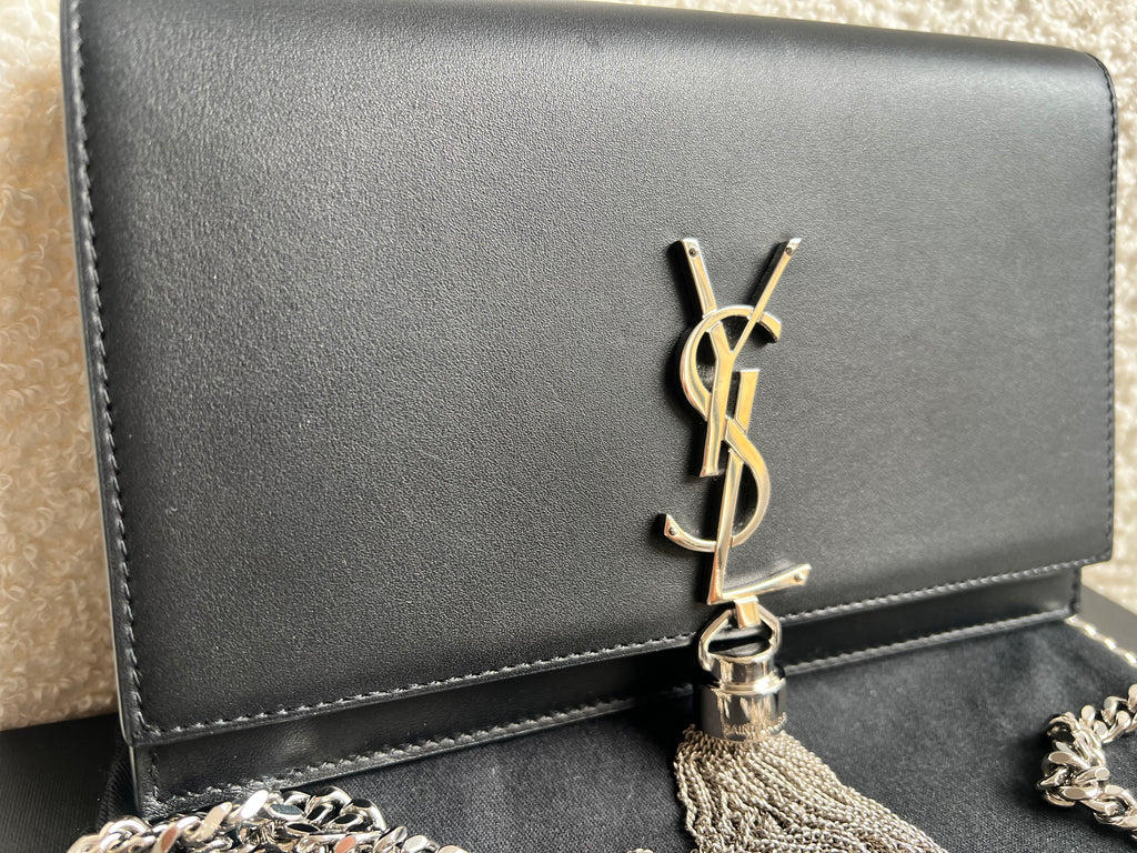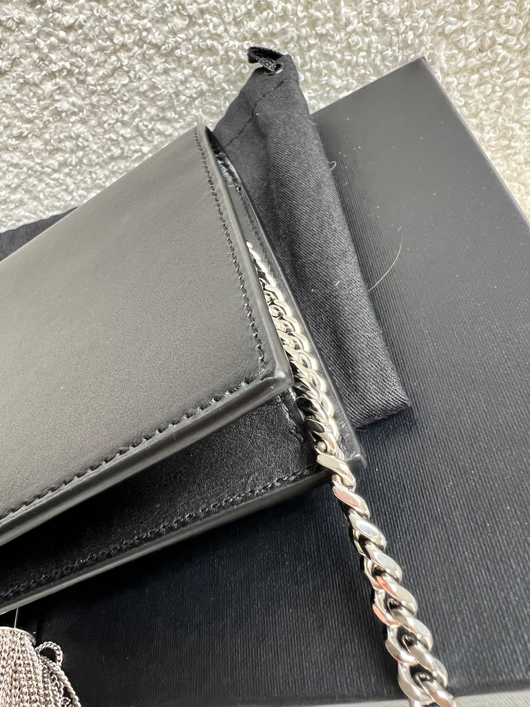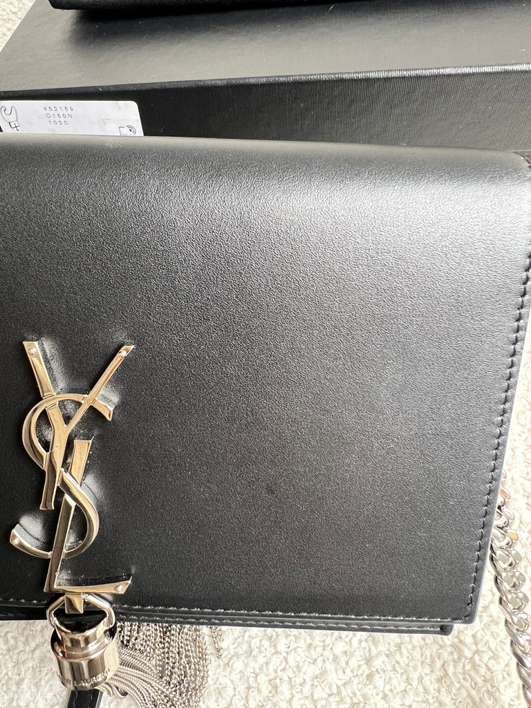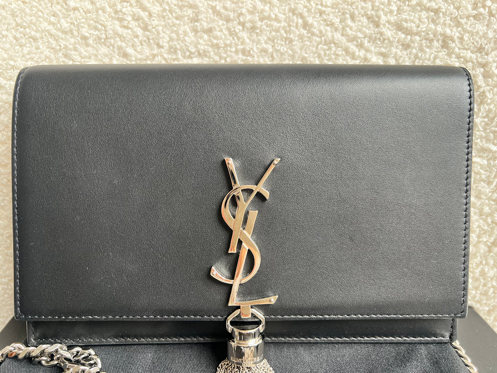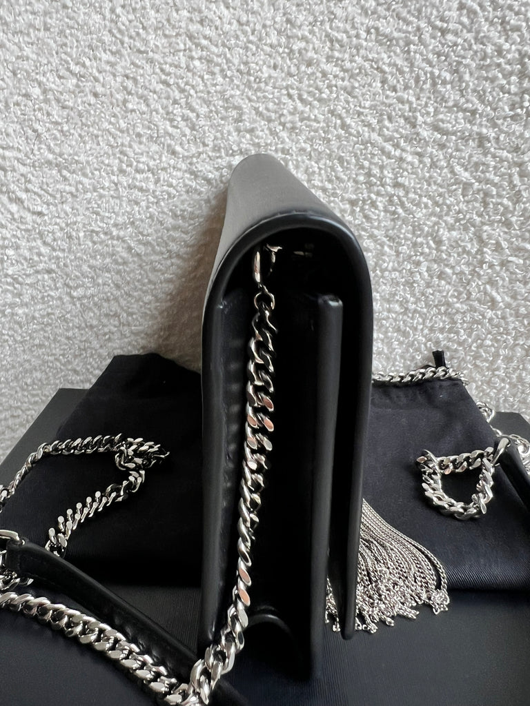 Yves Saint Laurent (YSL) Black Kate Tassel Chain Wallet Silver Hardware (RRP £1,440)