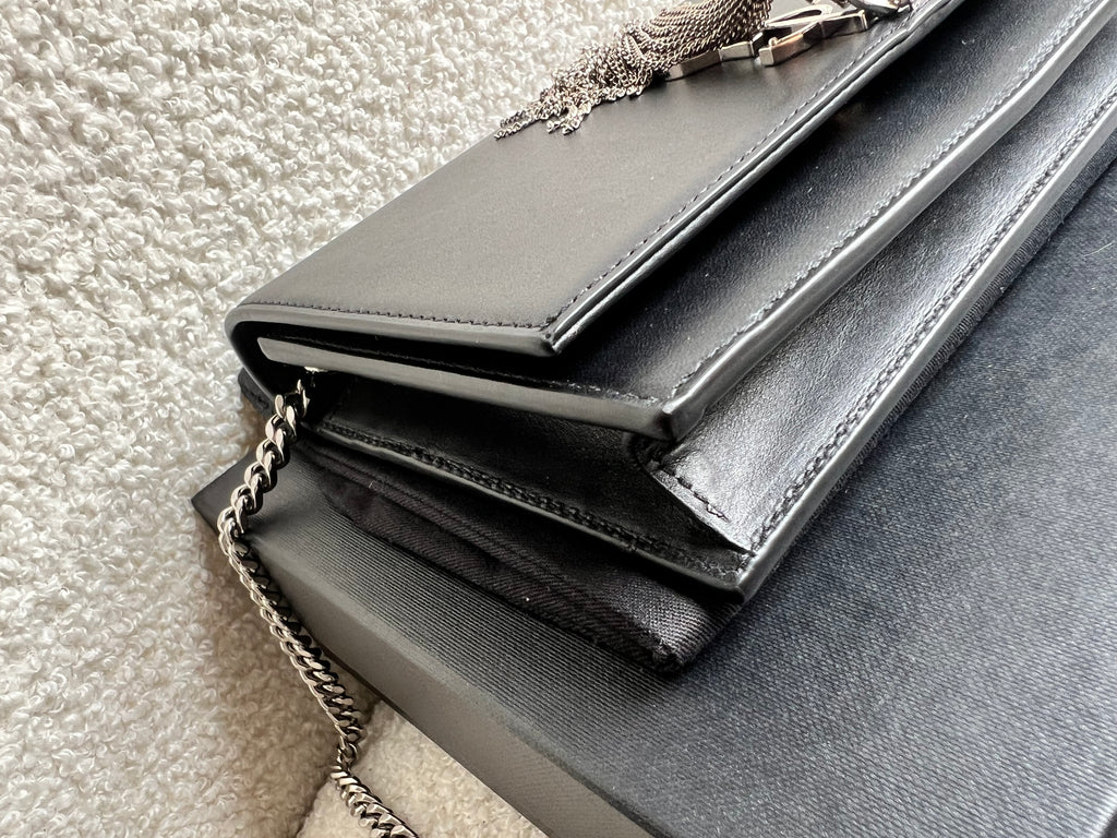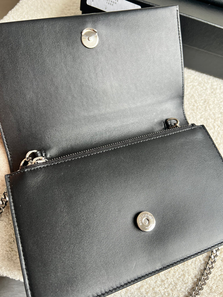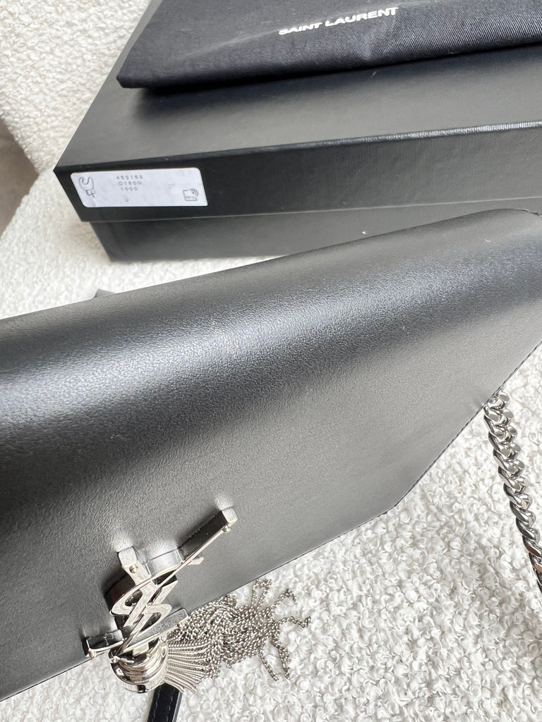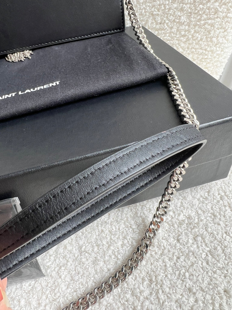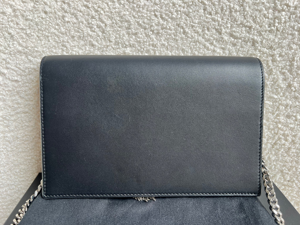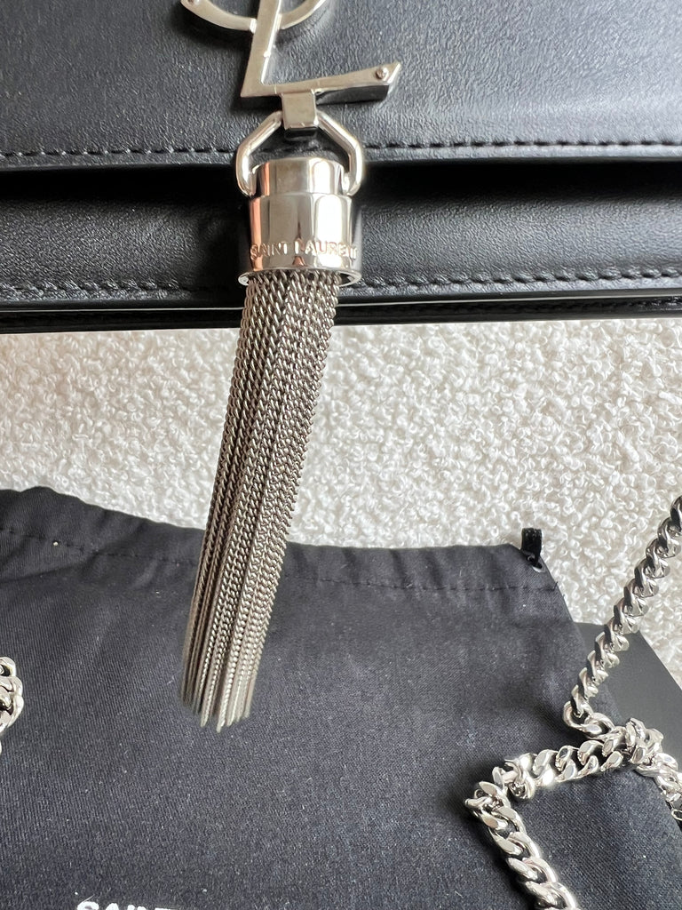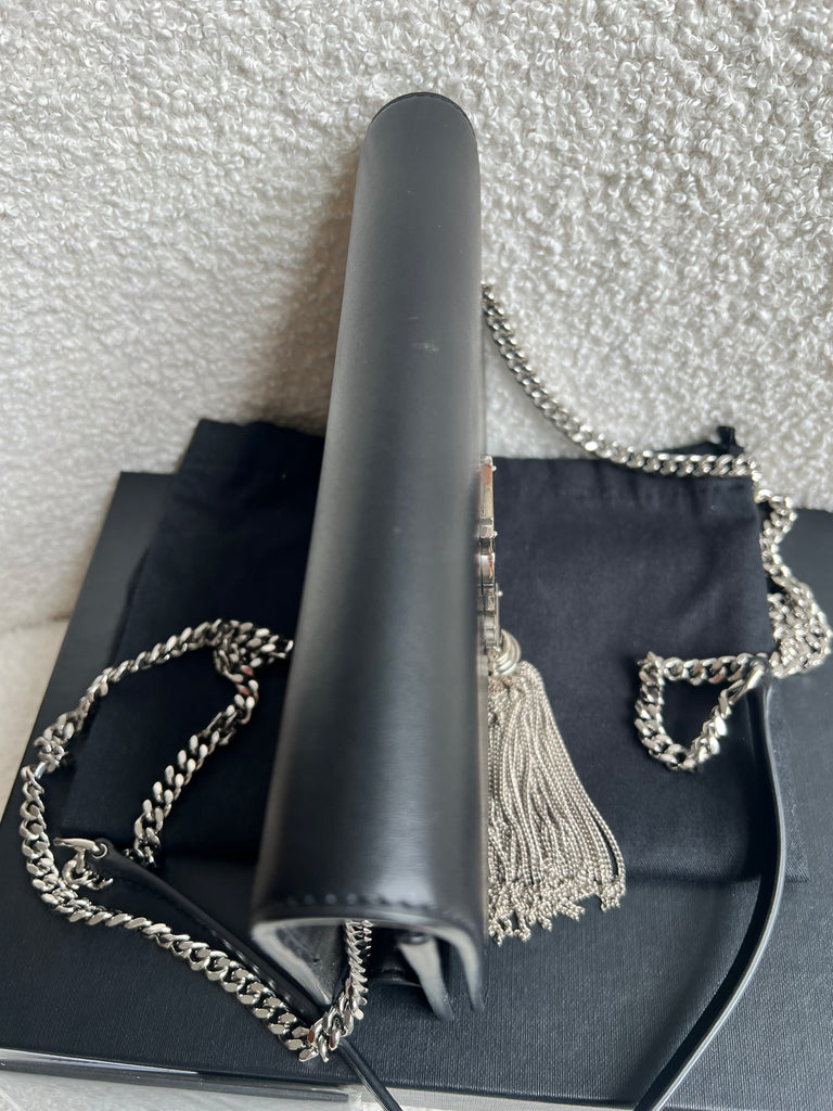 Yves Saint Laurent (YSL) Black Kate Tassel Chain Wallet Silver Hardware (RRP £1,440)