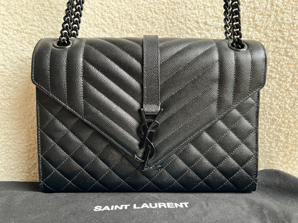 Yves Saint Laurent (YSL) Black on Black Medium Envelope Bag (RRP £2,235)
