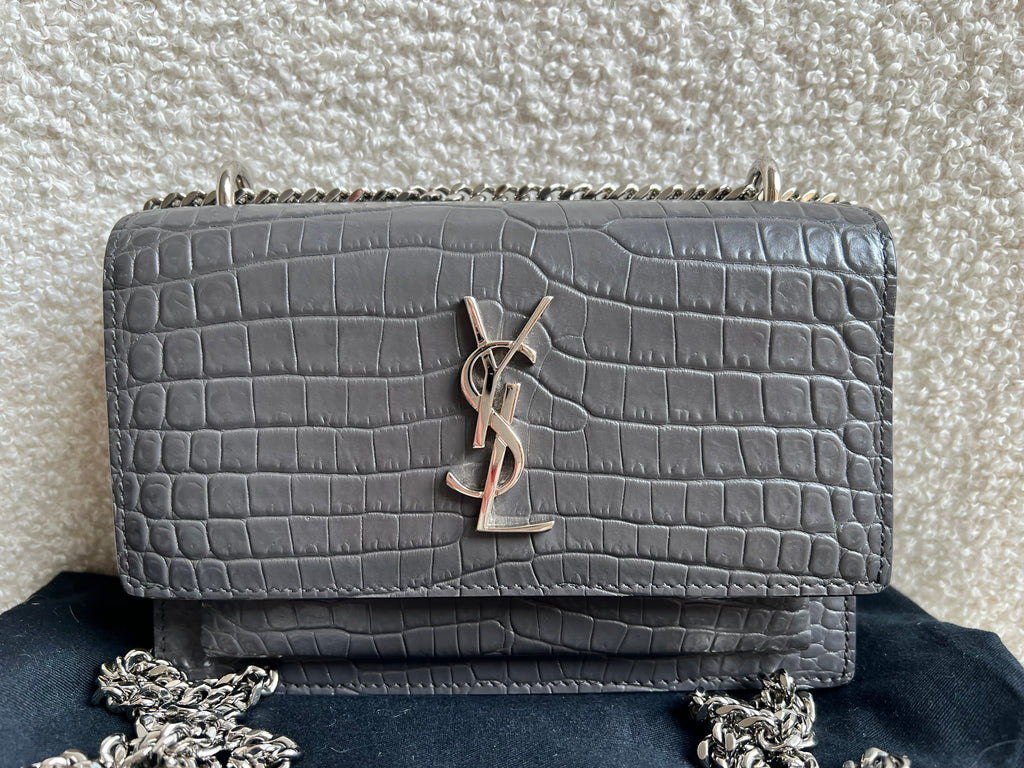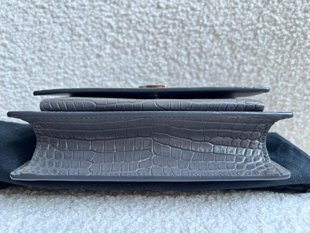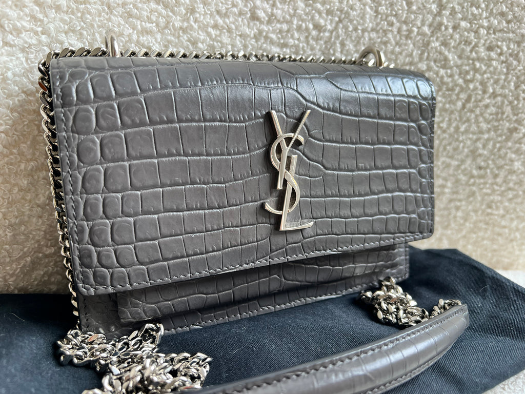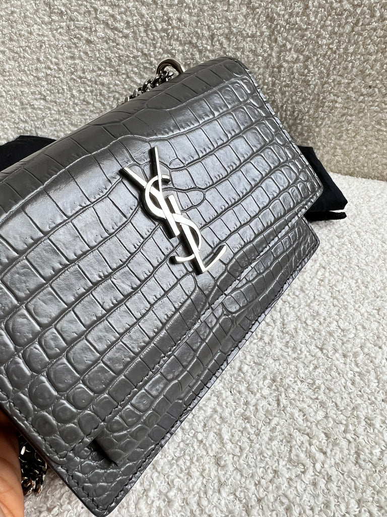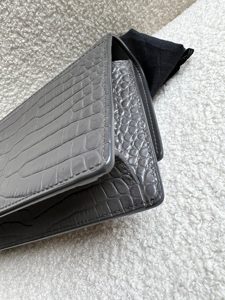 Yves Saint Laurent (YSL) Grey Croc Mini Sunset with Silver Hardware (RRP £1,445)