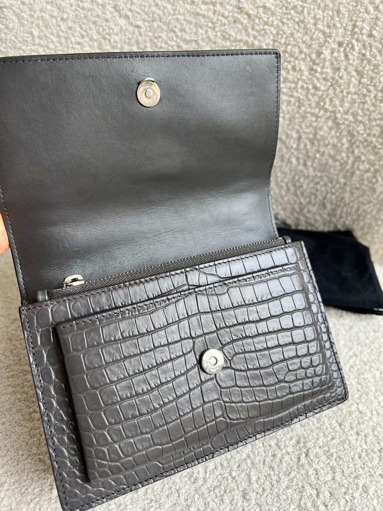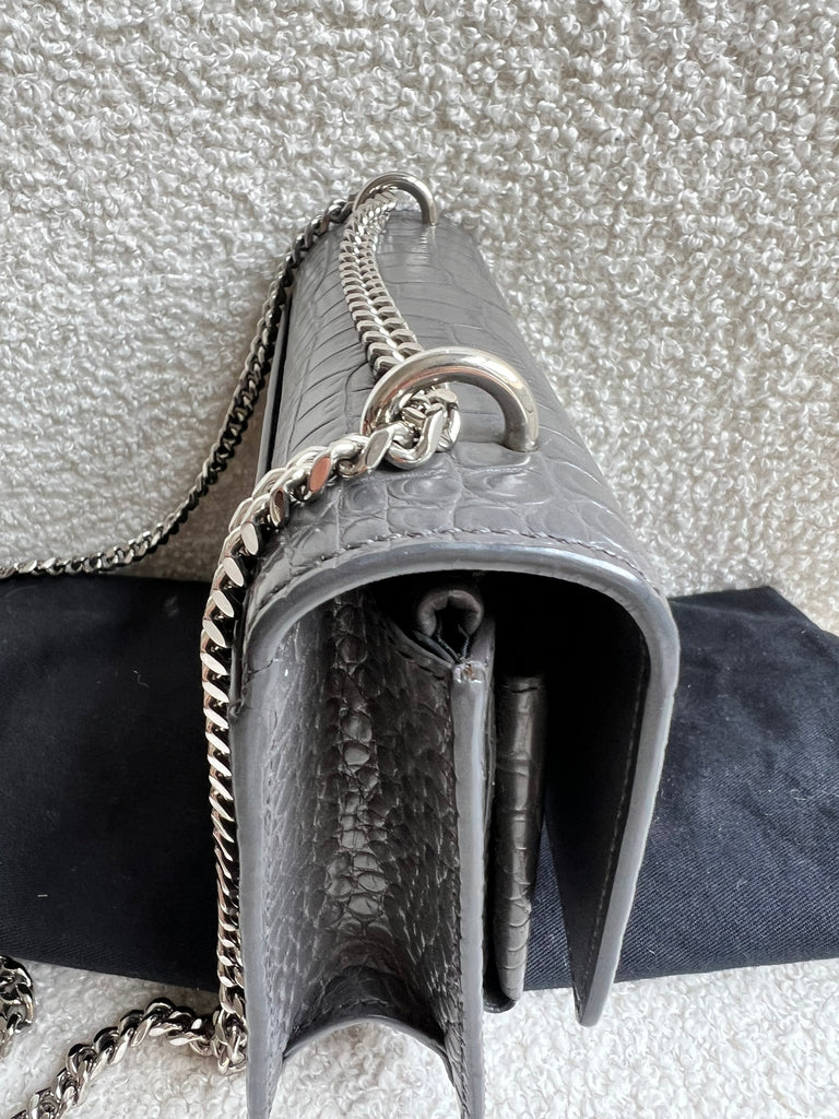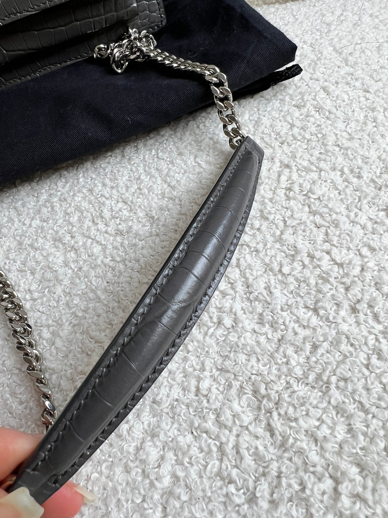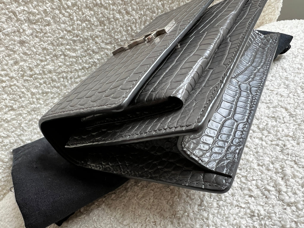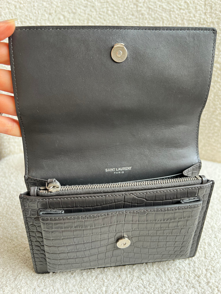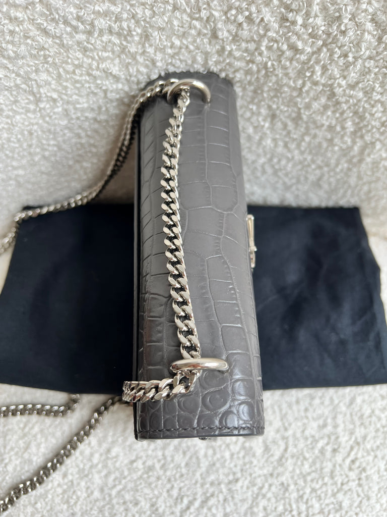 Yves Saint Laurent (YSL) Grey Croc Mini Sunset with Silver Hardware (RRP £1,445)