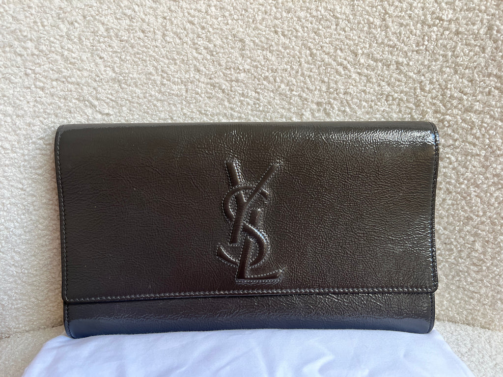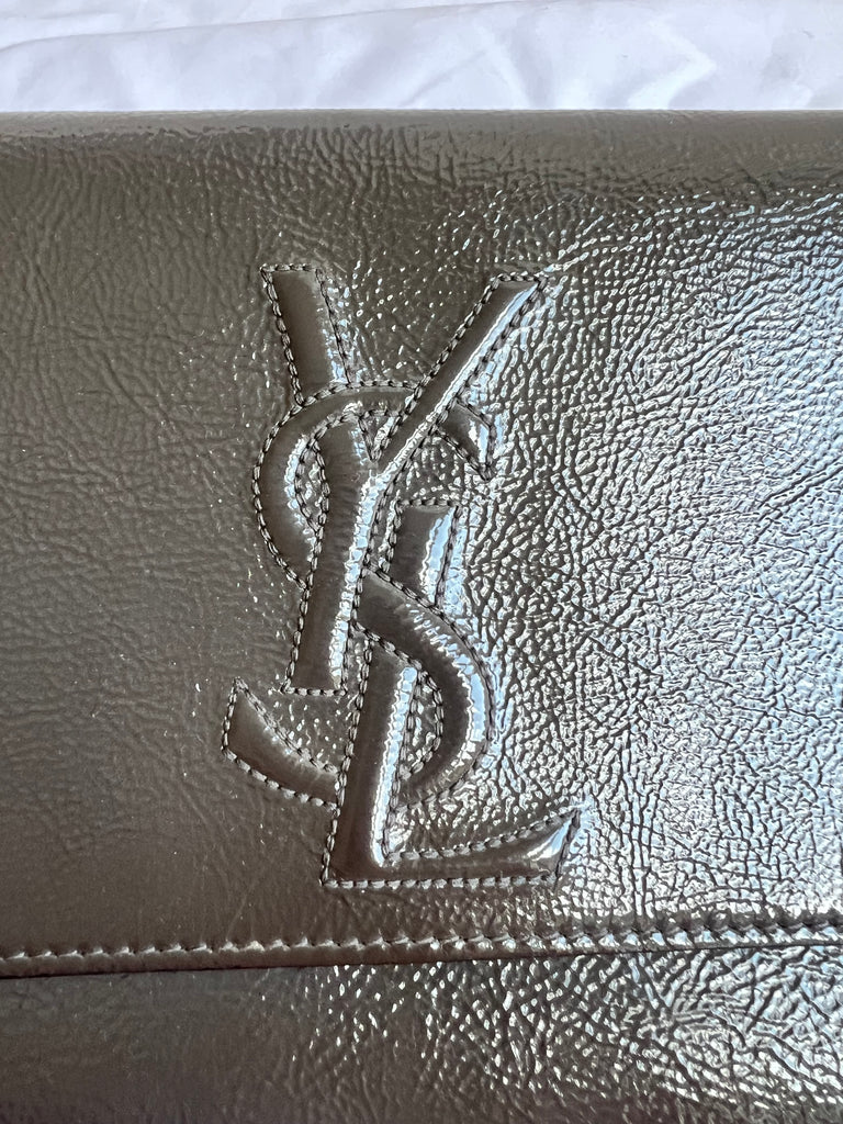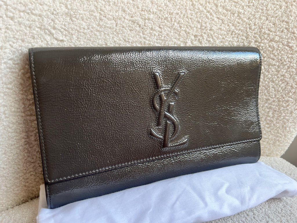 Yves Saint Laurent (YSL) Grey Patent Belle de Jour Clutch