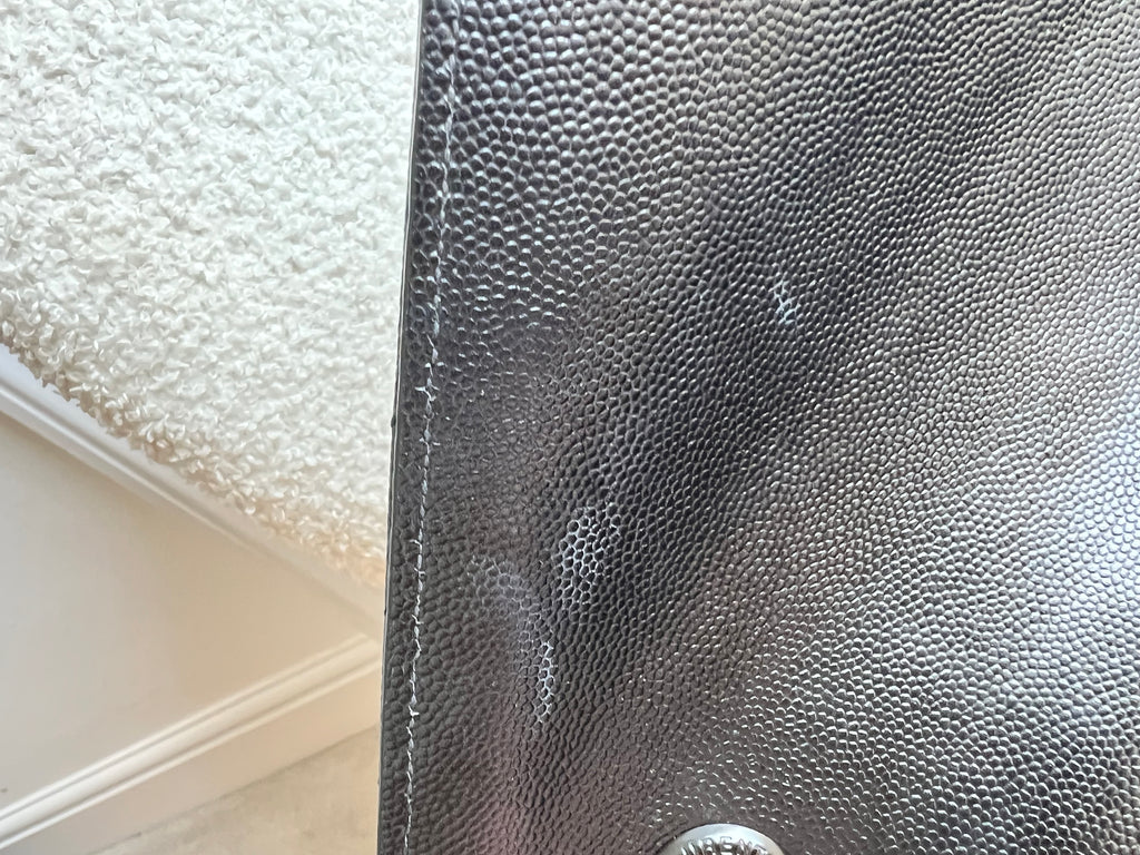 Hardware: Good condition with some tarnishing to strap and some marks to lettering.