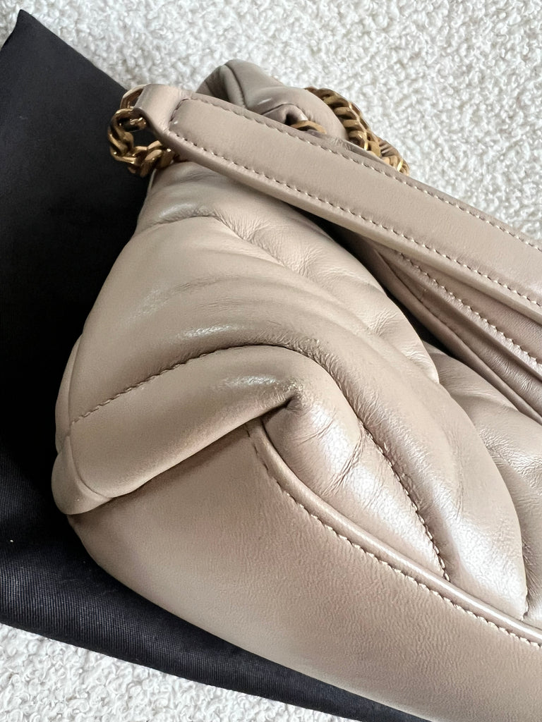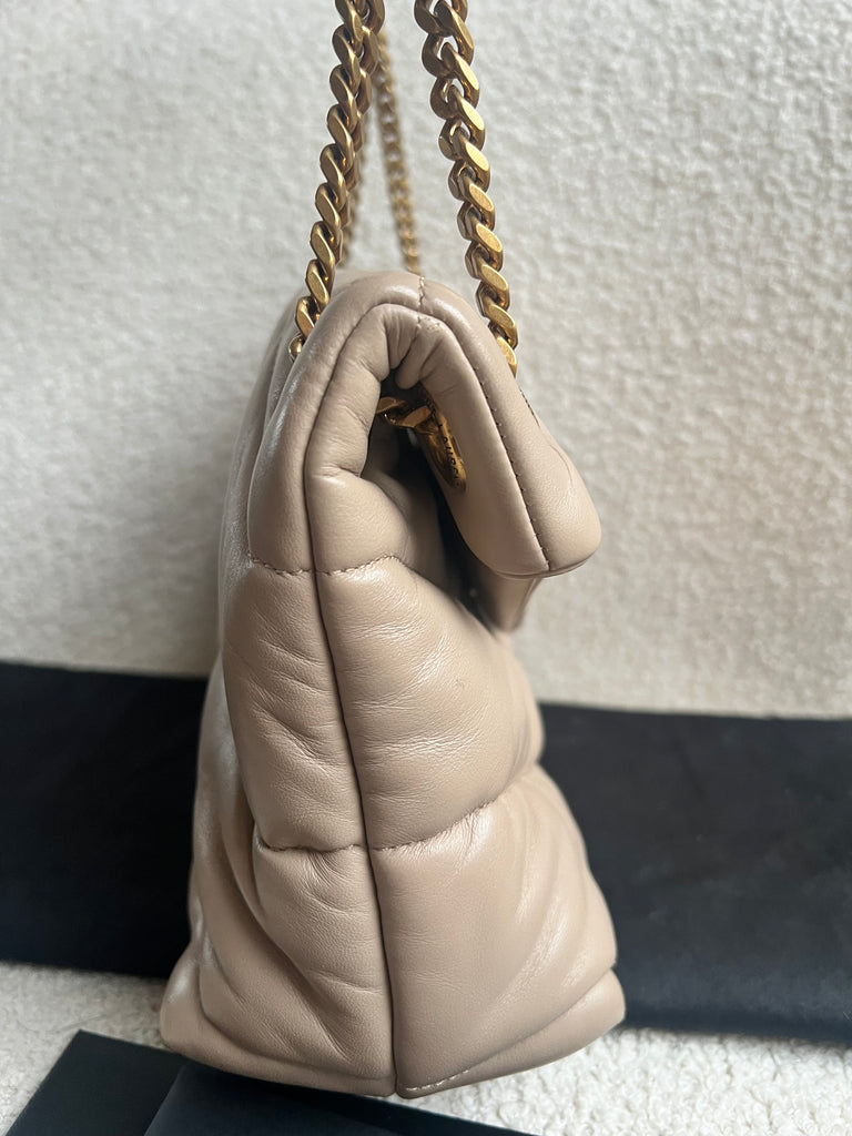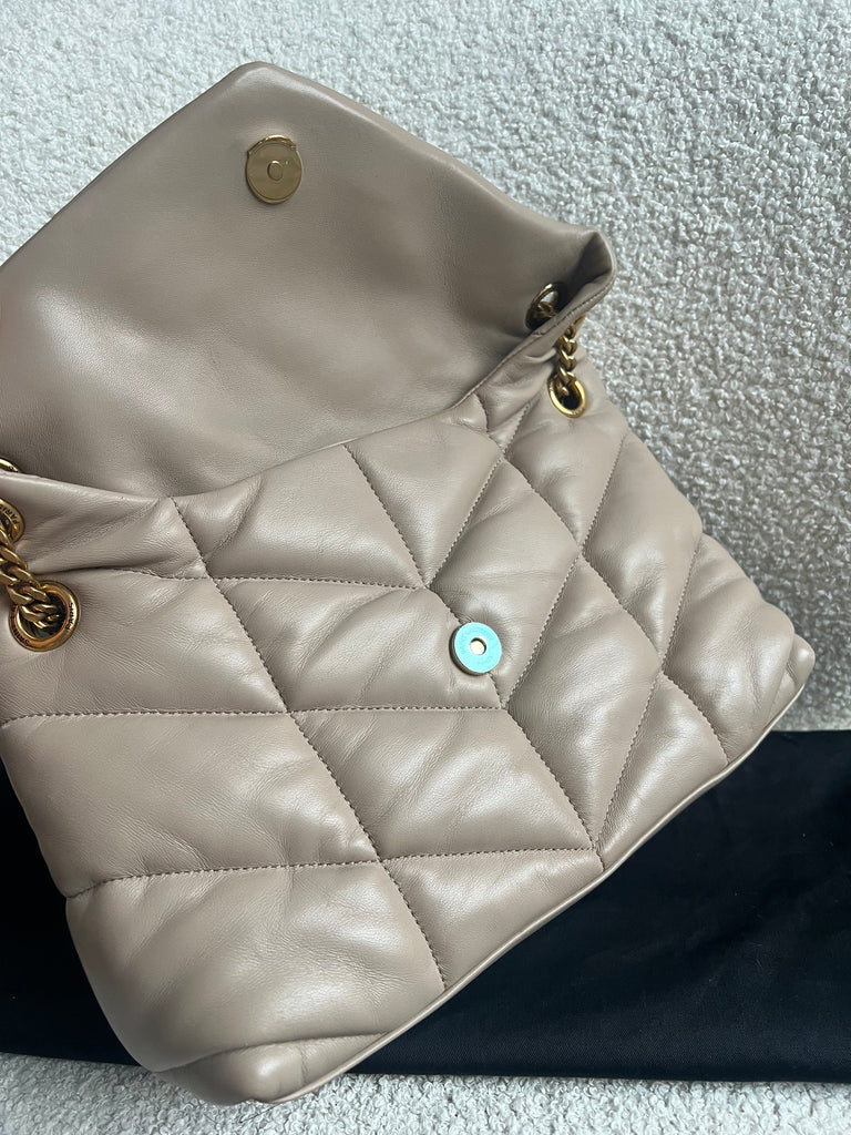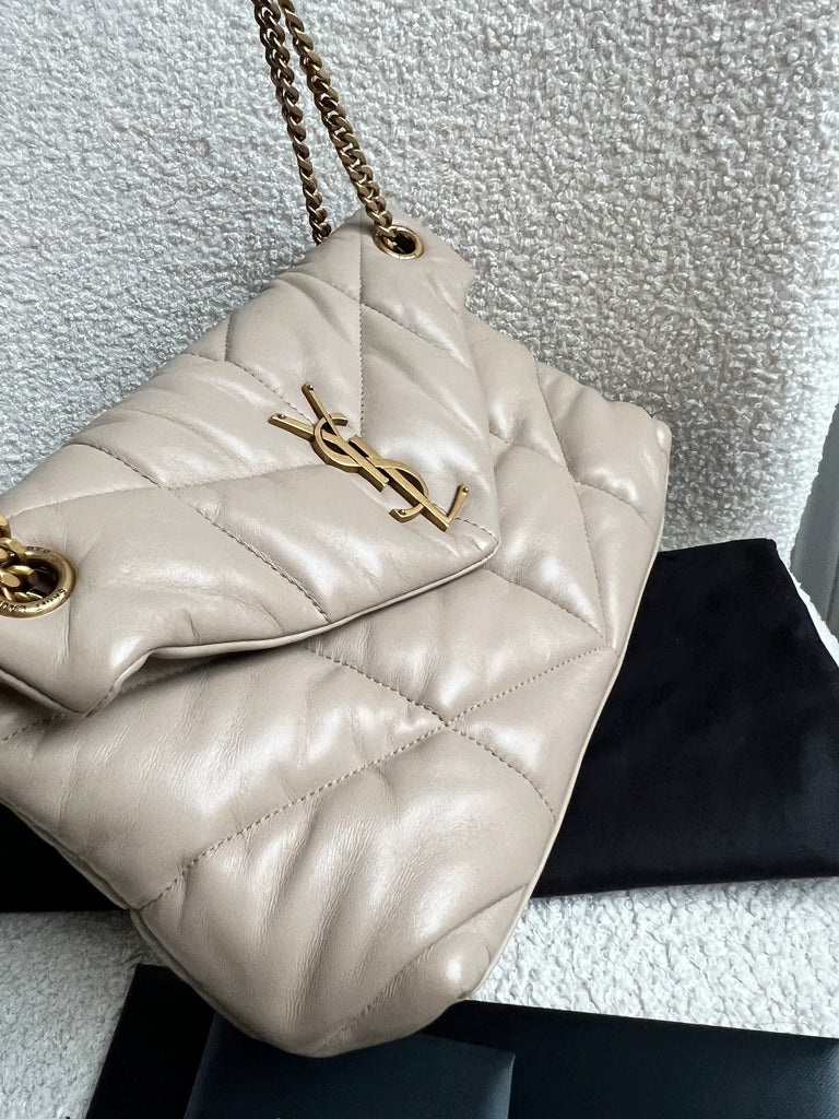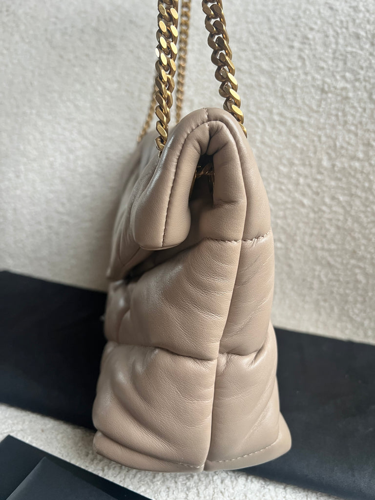 Yves Saint Laurent (YSL) Small Puffer in Light Musk Quilted Lambskin Gold Hardware (RRP £2,415)