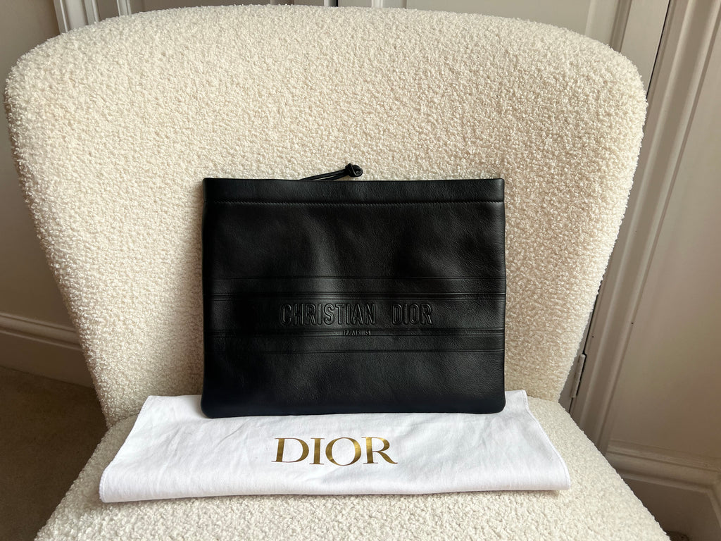 Christian Dior Zip Pouch in Black Lambskin