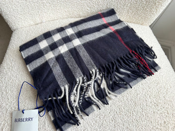 Burberry Classic Check Navy Cashmere Scarf (RRP £435)