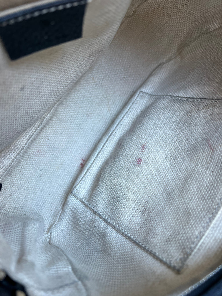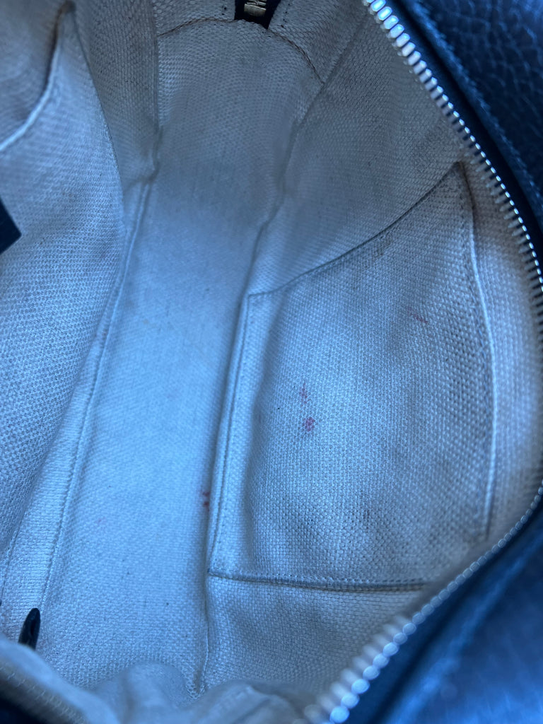 Exterior: Very good condition with small signs of wear. Slight softening to the leather. Slight marks to the leather and small amount of rubbing to corners. Slight wear to inking on strap attachments.